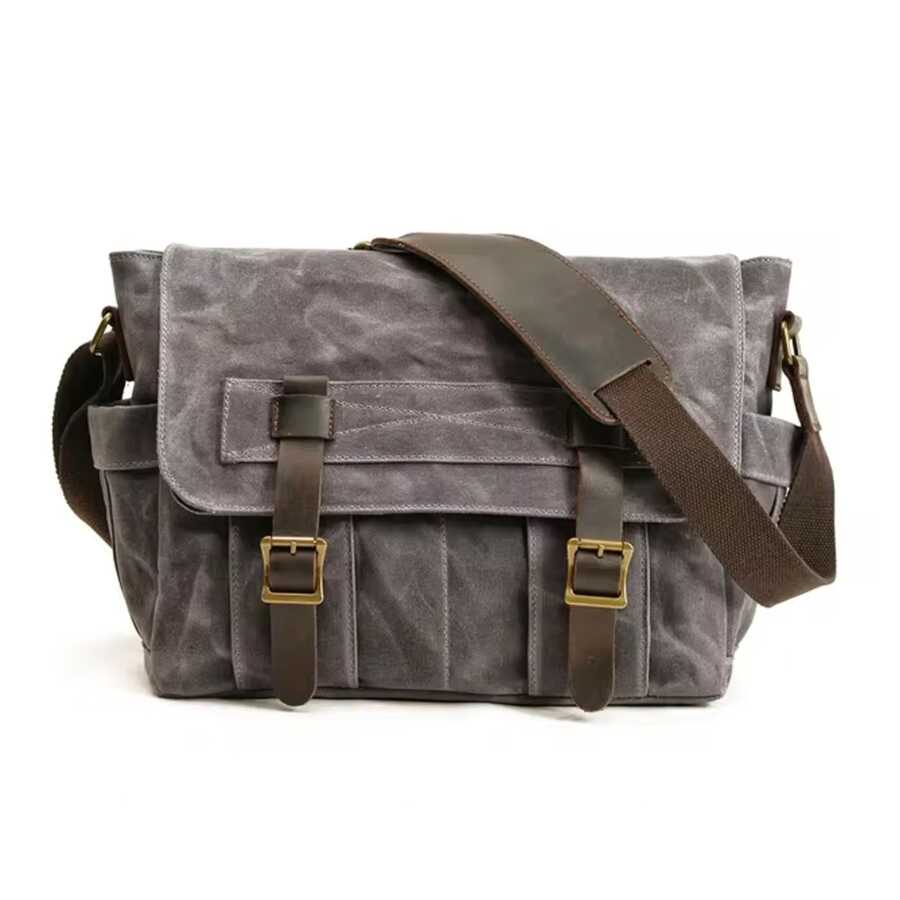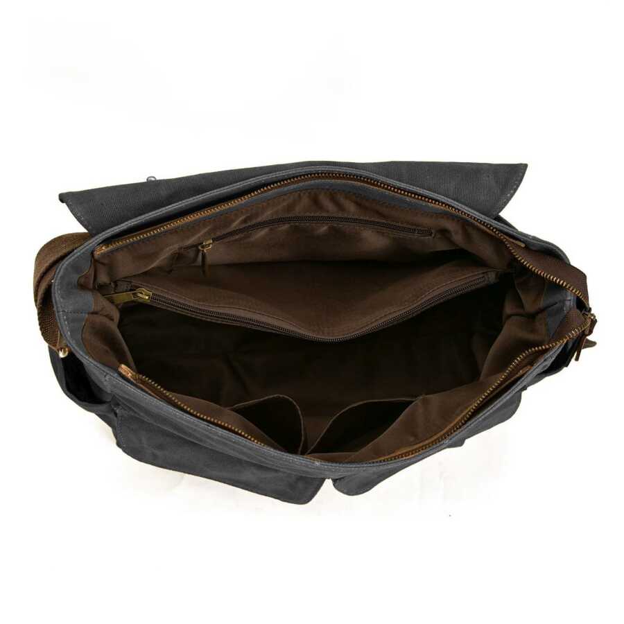 Birinci sınıf mumlu kanvas ve deri kayışlardan üretilmiş çok şık tarzı ile günlük kullanım için ideal bir postacı çanta