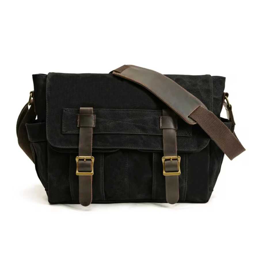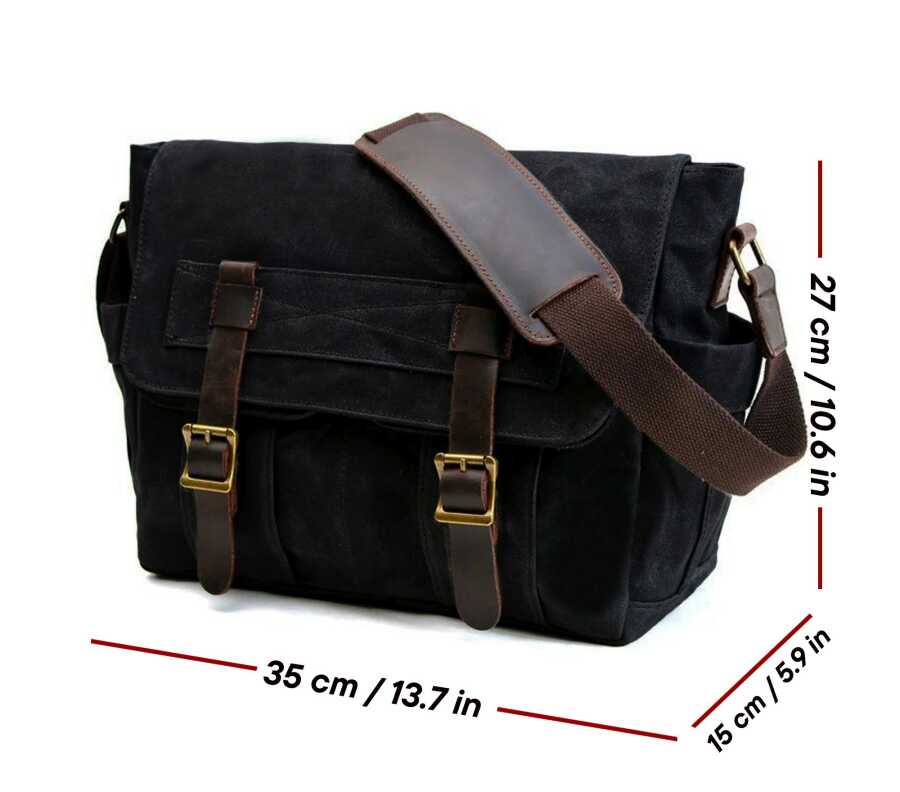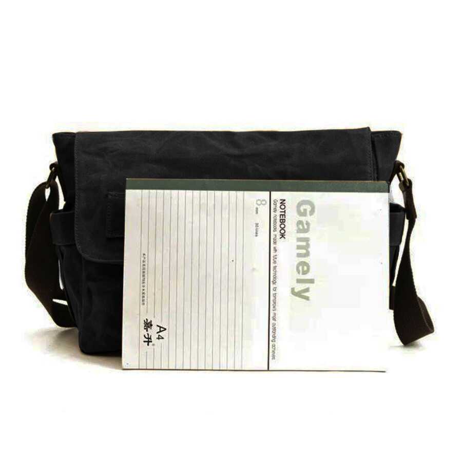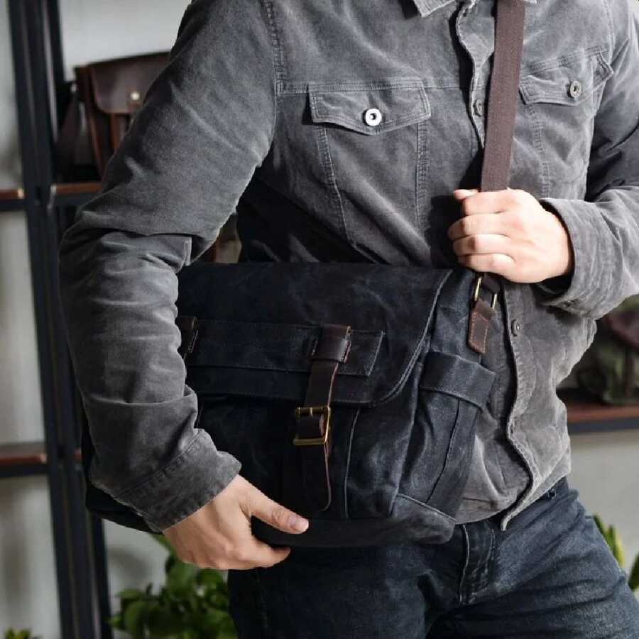 Birinci sınıf mumlu kanvas ve deri kayışlardan üretilmiş çok şık tarzı ile günlük kullanım için ideal bir postacı çanta