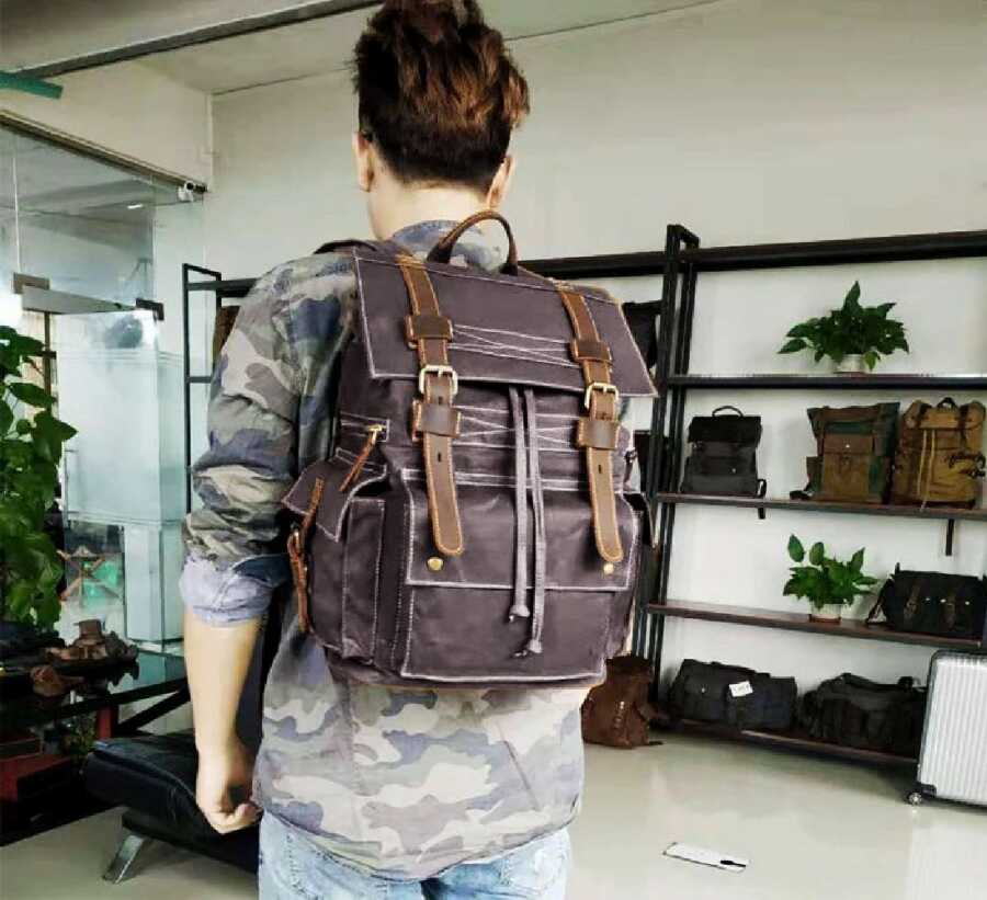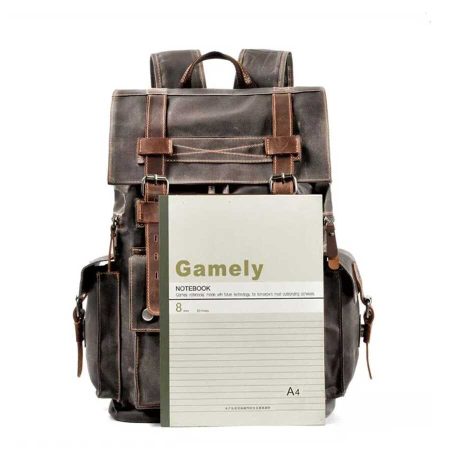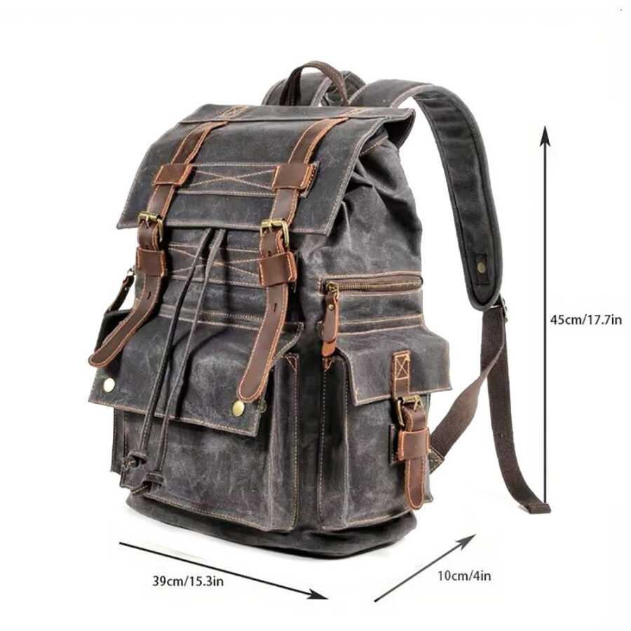 Birinci sınıf mumlu kanvas ve hakiki deri kayışları, 45x30x19 cm büyük boyutu, eskitilmiş retro tarzı ve renk seçenekleriyle eşsiz bir tercih