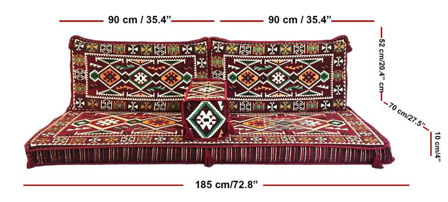 Oturma minderi: 185 cm x 10 cm x 70 cm (1 adet)