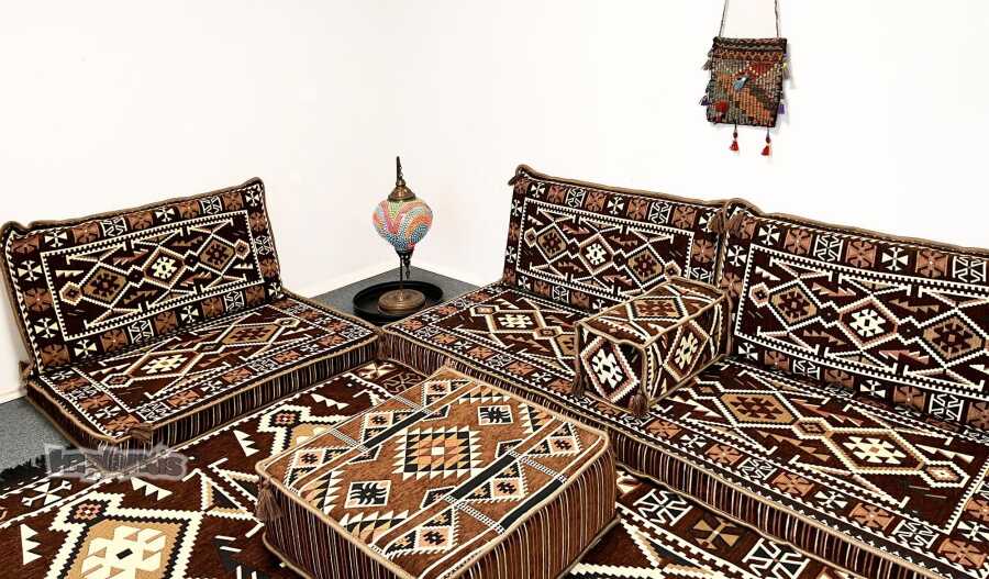 Pamuk - Polyester - PP karışımlı, Anadolu desen dokumalı, tekli şark köşesi takımı kılıfları