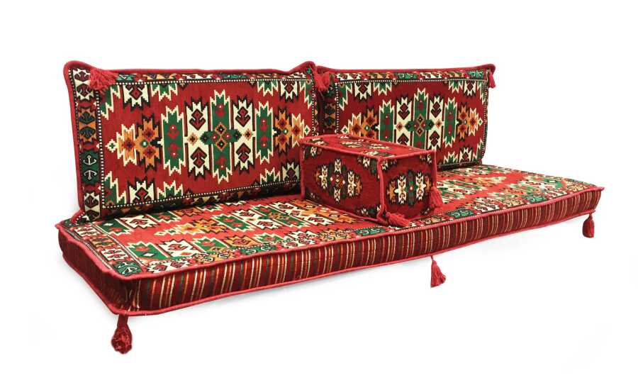 Takım, 2 adet sırt minderi, tek parça oturma minderi ve 1 adet kol minderinden oluşmaktadır.