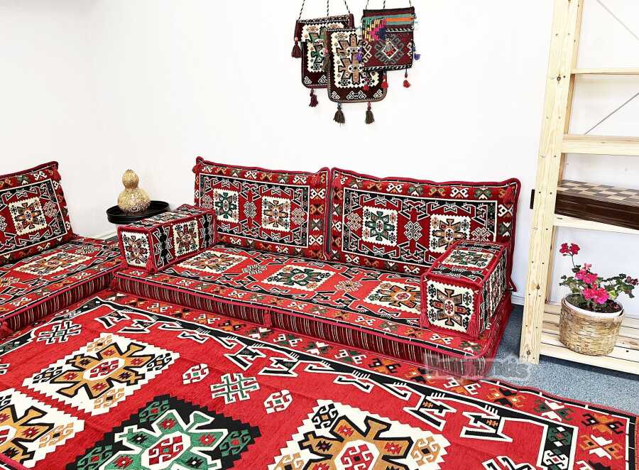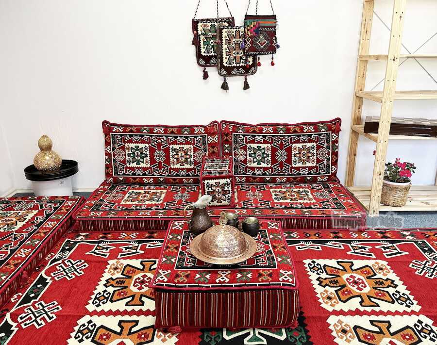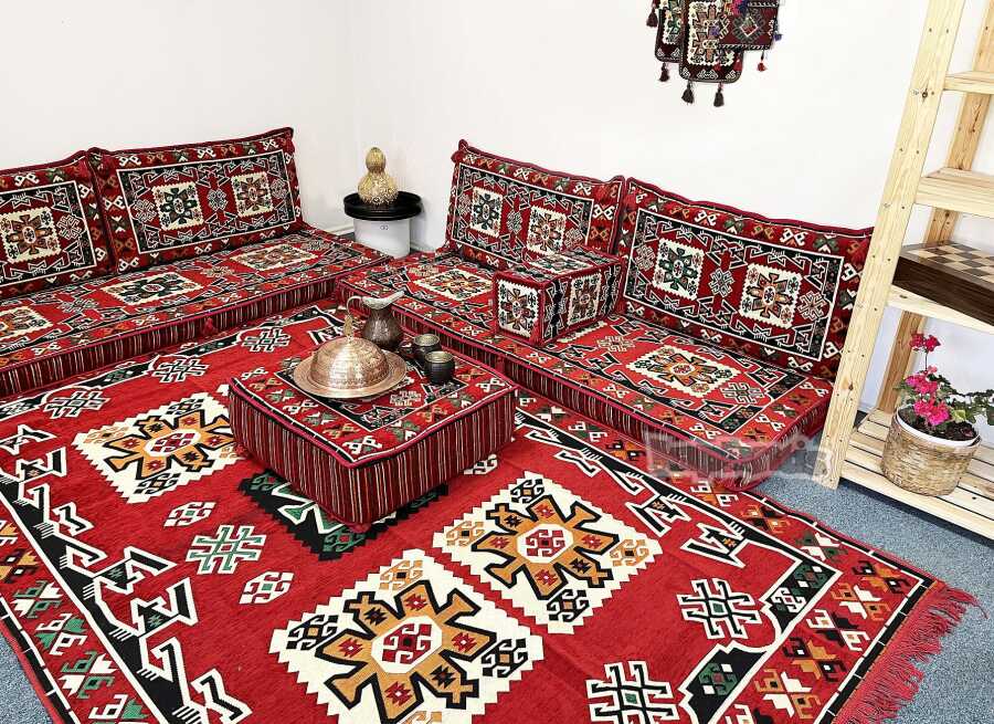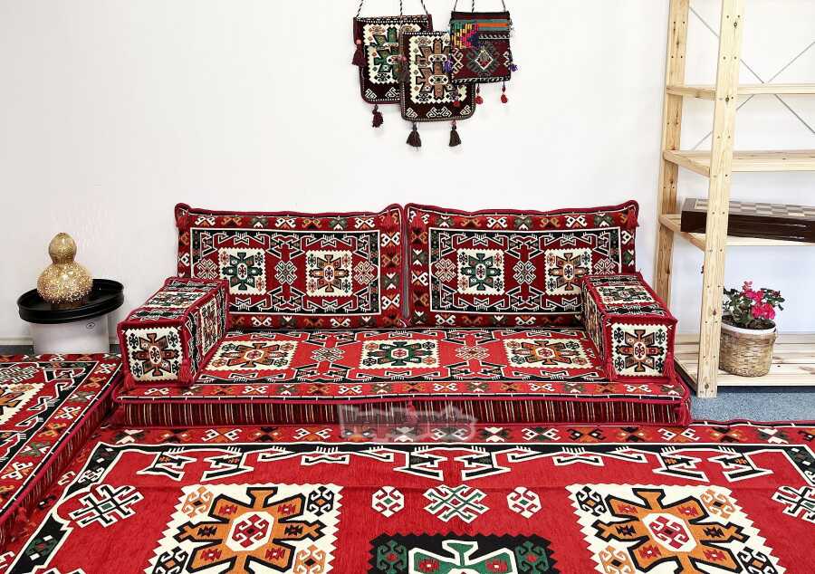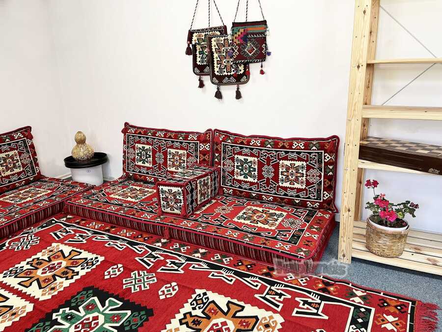 Takım, 2 adet sırt minderi, tek parça oturma minderi ve 1 adet kol minderinden oluşmaktadır.