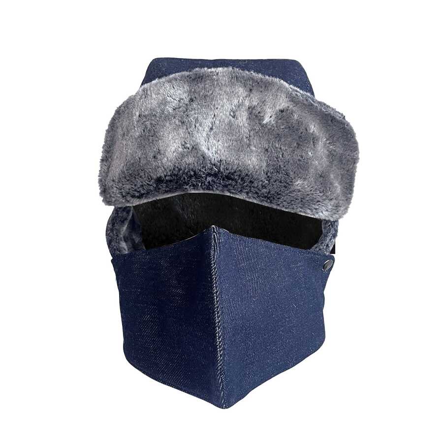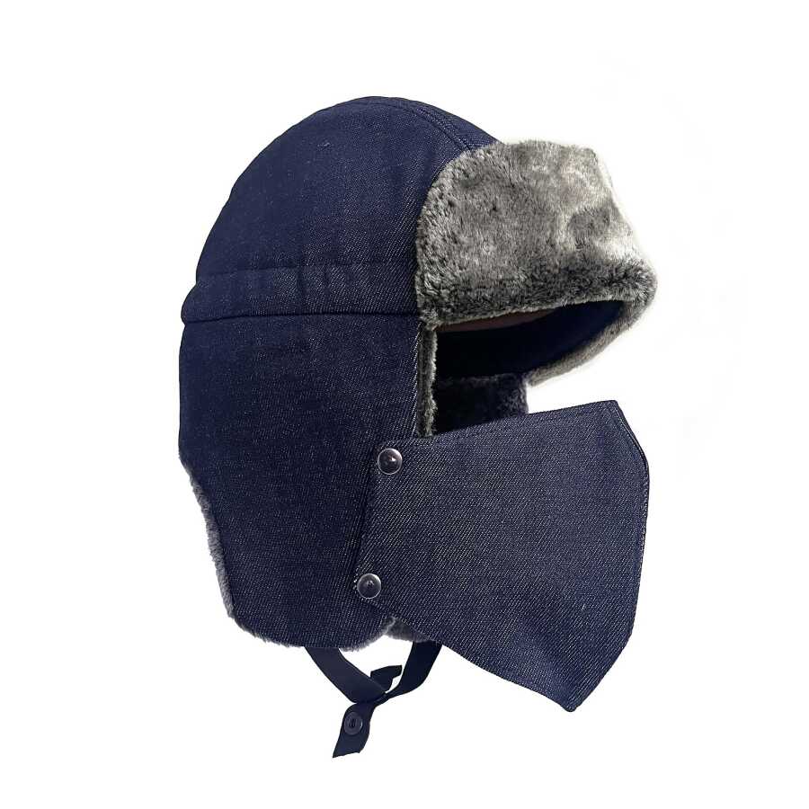 Kaliteli ve şık, çıkarılabilir maskeli pilot kürklü kar ve kayak şapkası