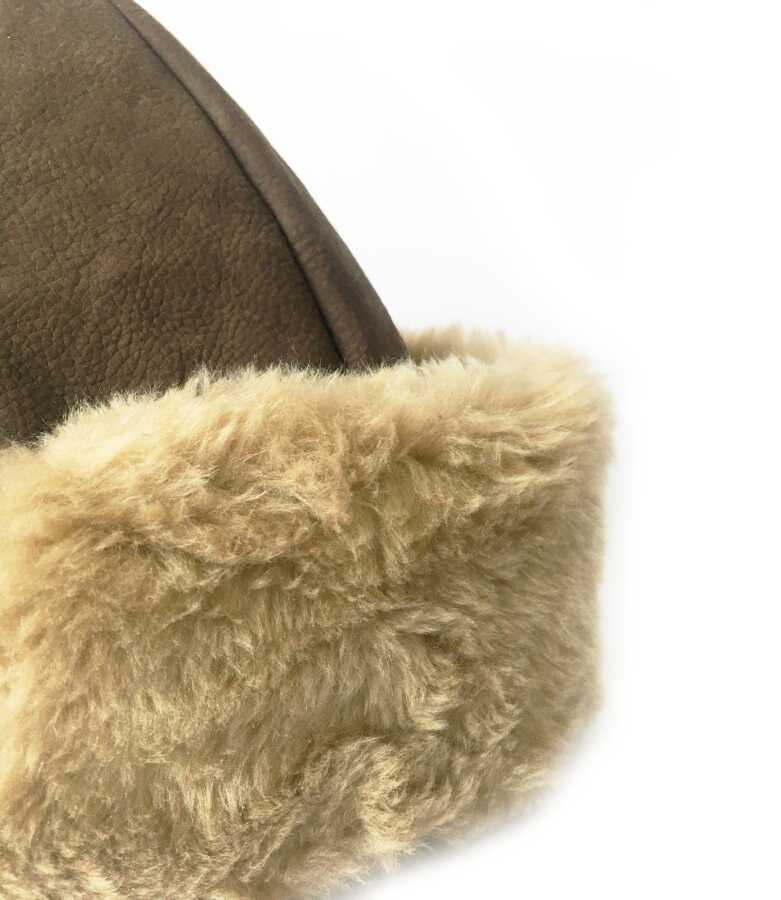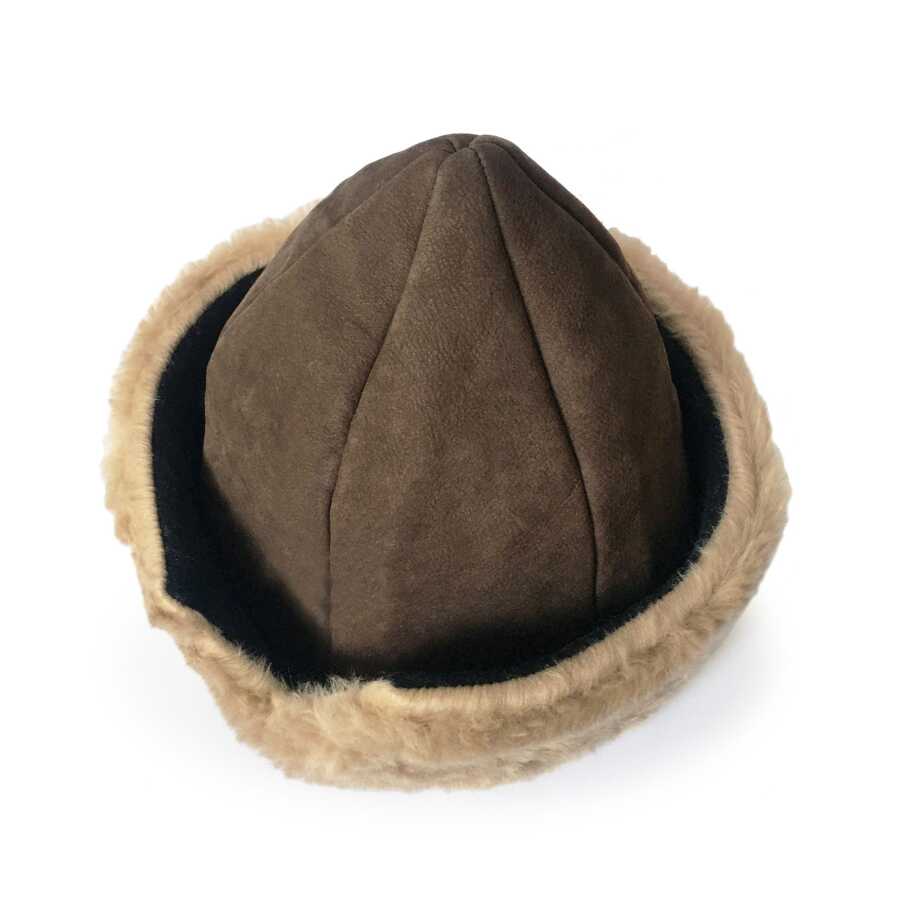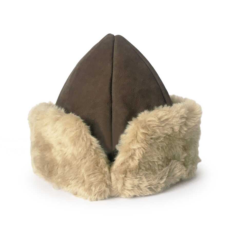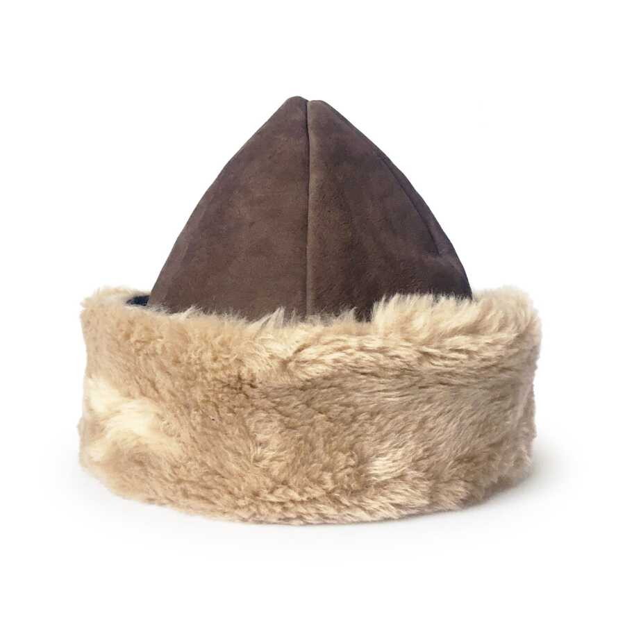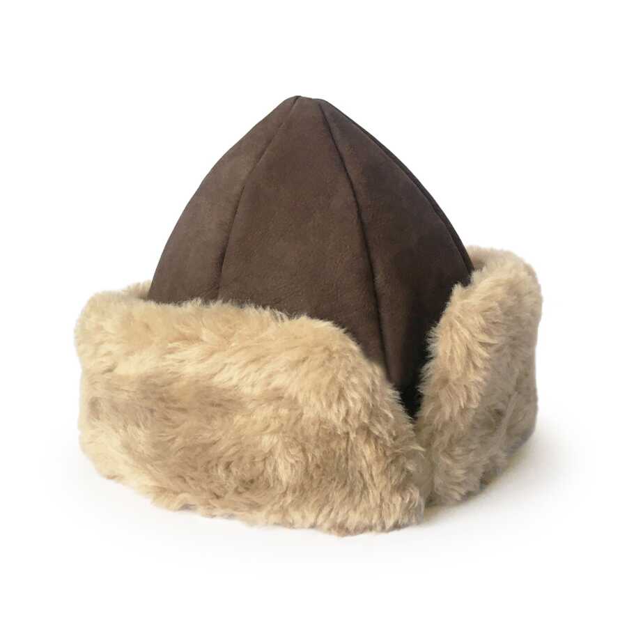 Kaliteli ve şık, geleneksel Kayı Boyu Ertuğrul Gazi Deri Açık Kahve Kürklü Nubuk Börk