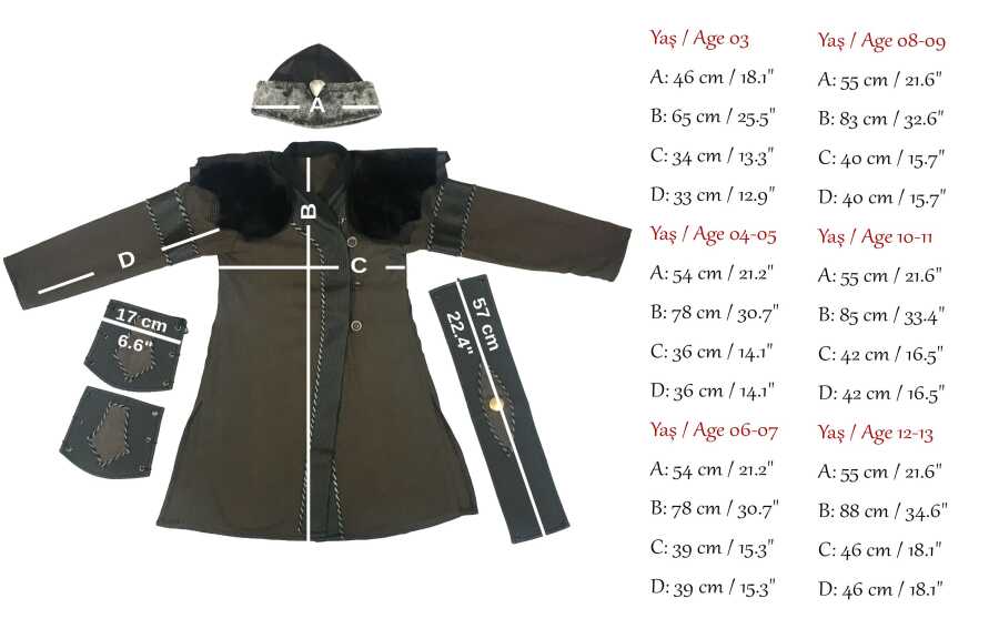 Kaliteli ve şık geleneksel Kayı boyu Ertuğrul Gazi Alp çocuk kostümü