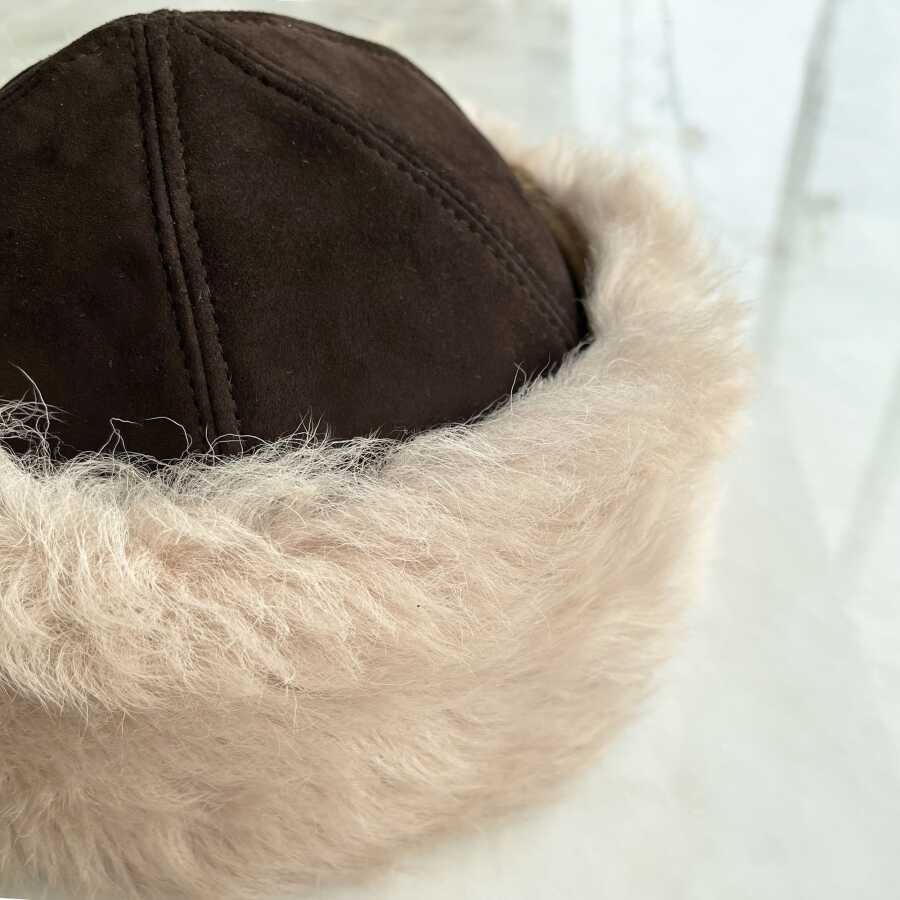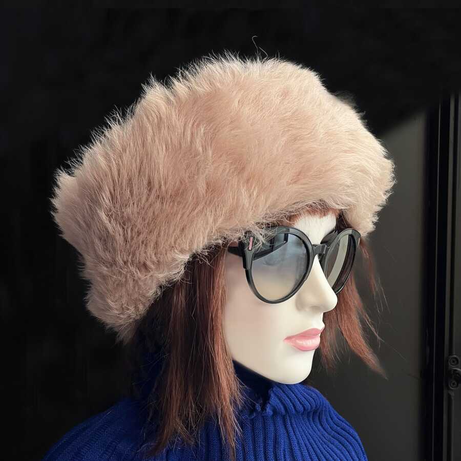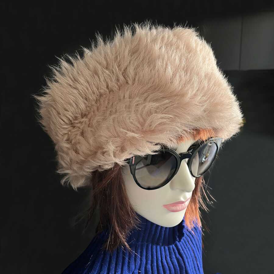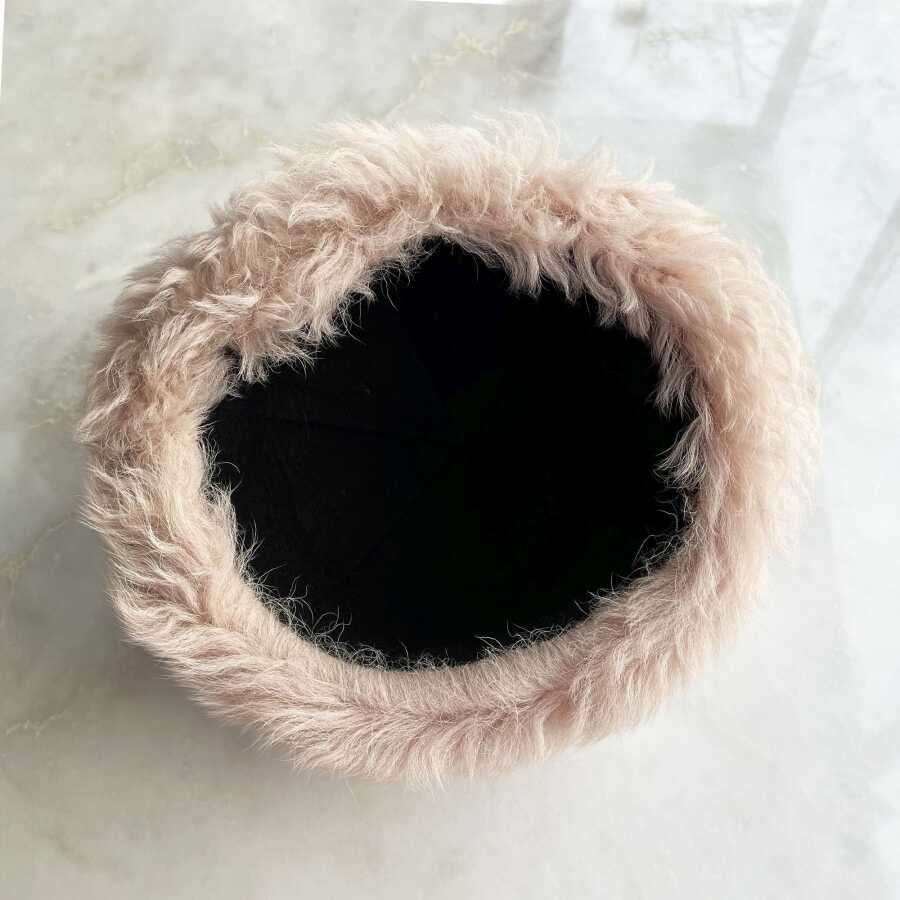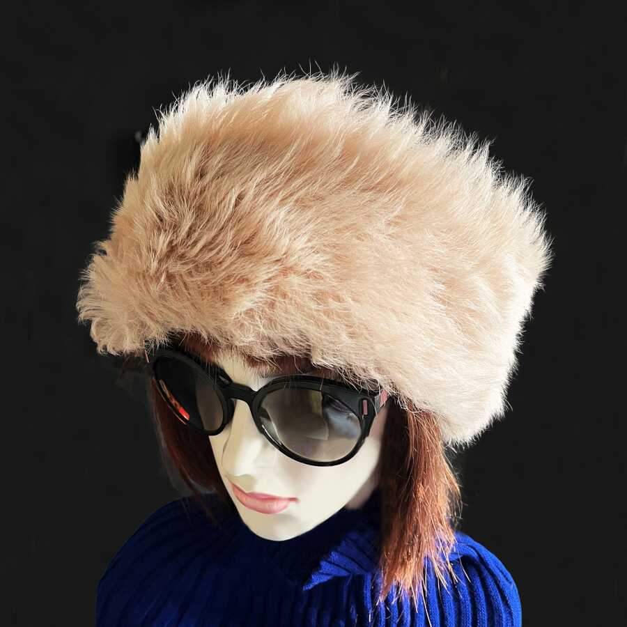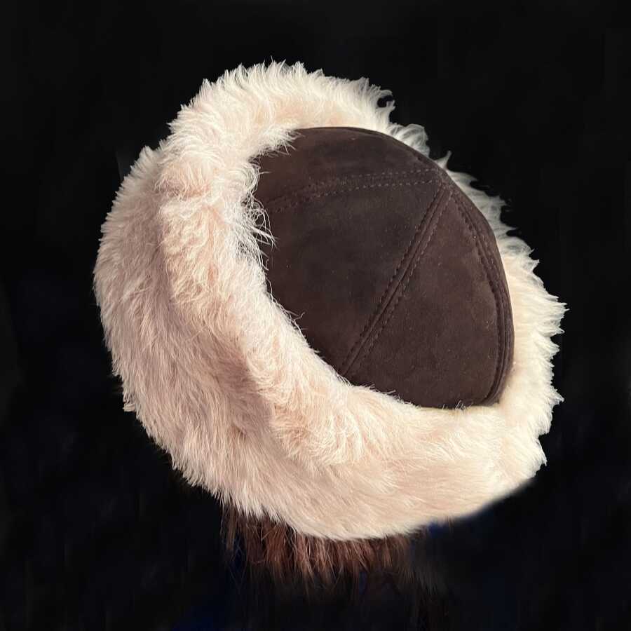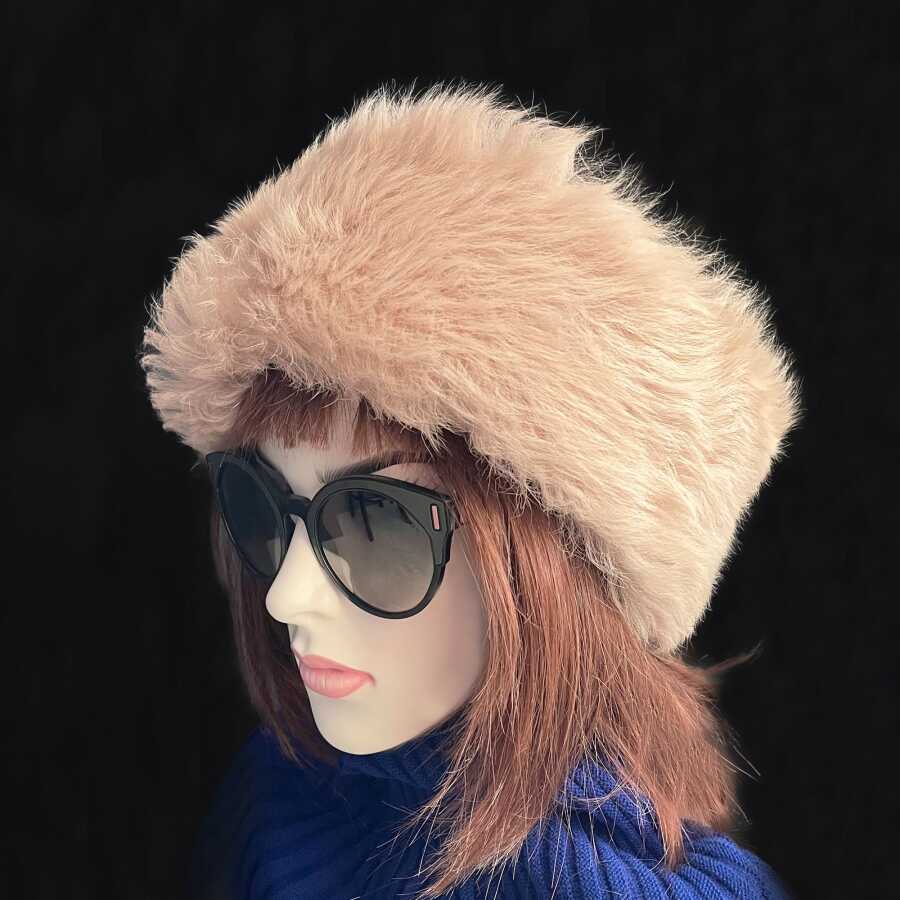 Kaliteli ve şık, el yapımı, açık pembe kürklü gerçek deri kadın börk şapka