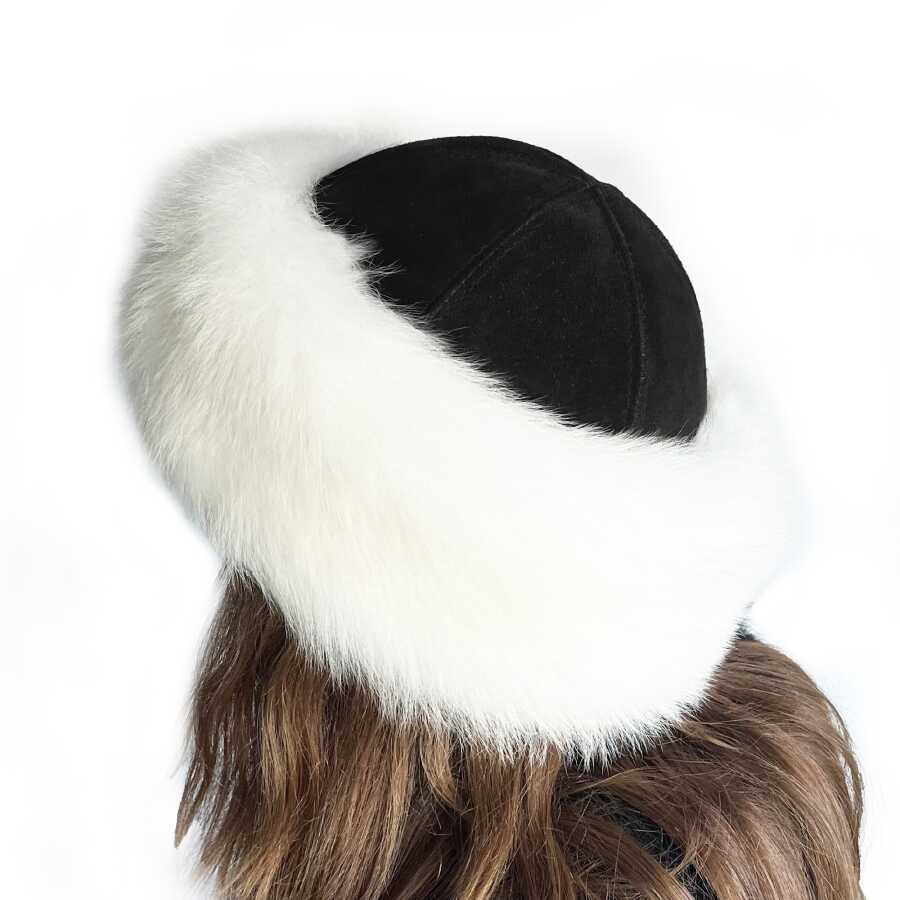 Beyaz kürk, tepesi siyah nubuk deri