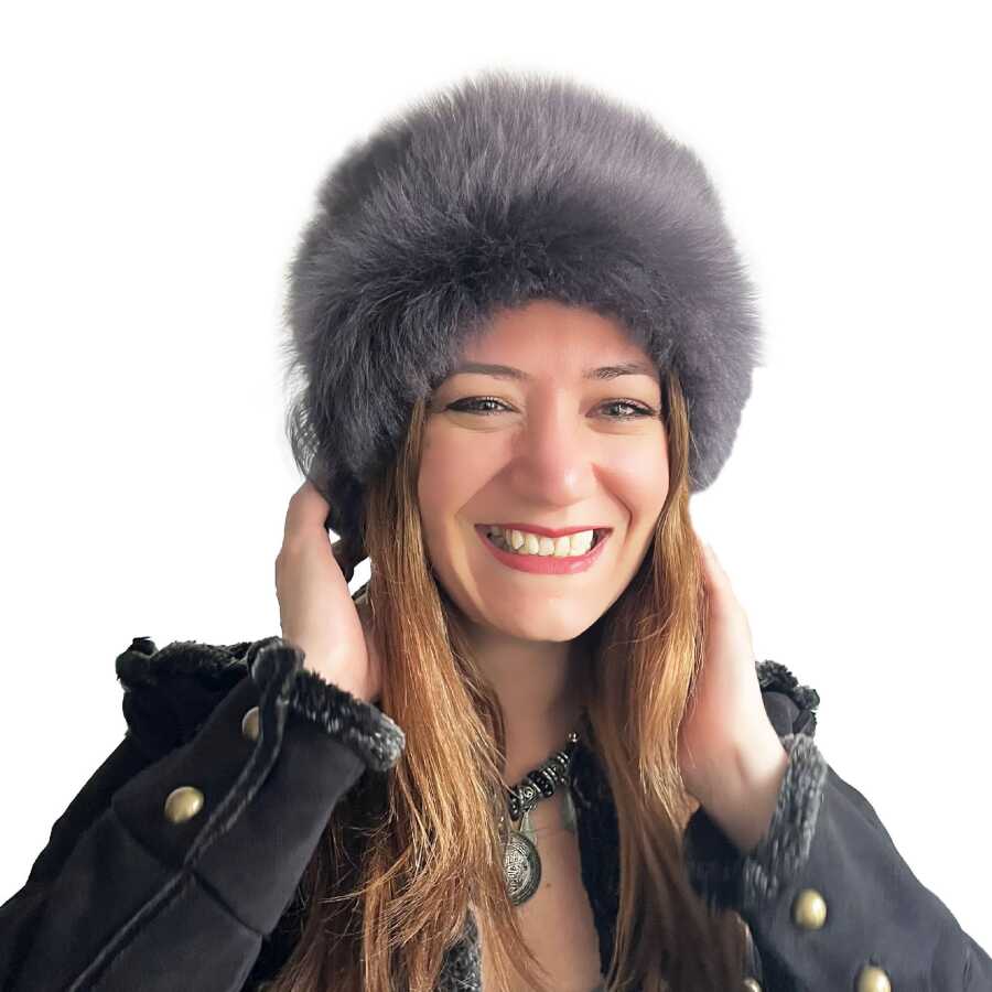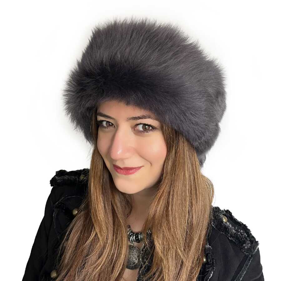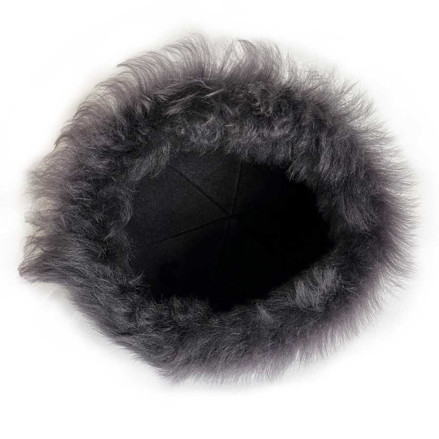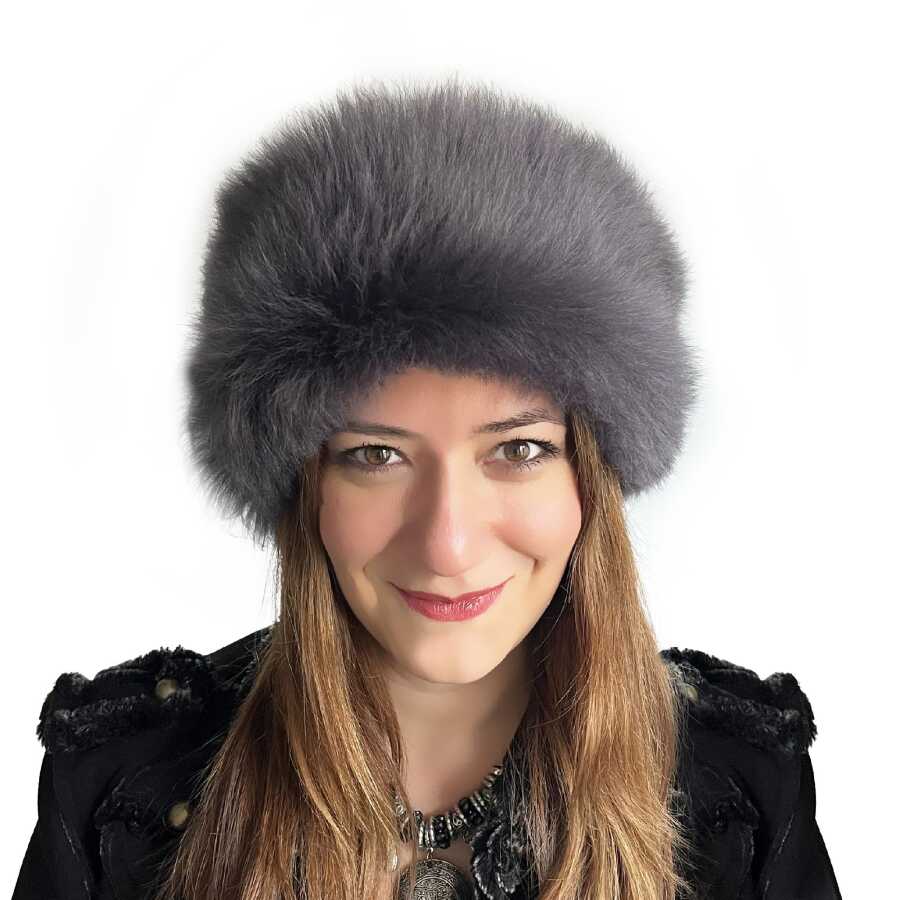 Kaliteli ve şık, el yapımı, gri boz kürklü gerçek deri kadın börk şapka