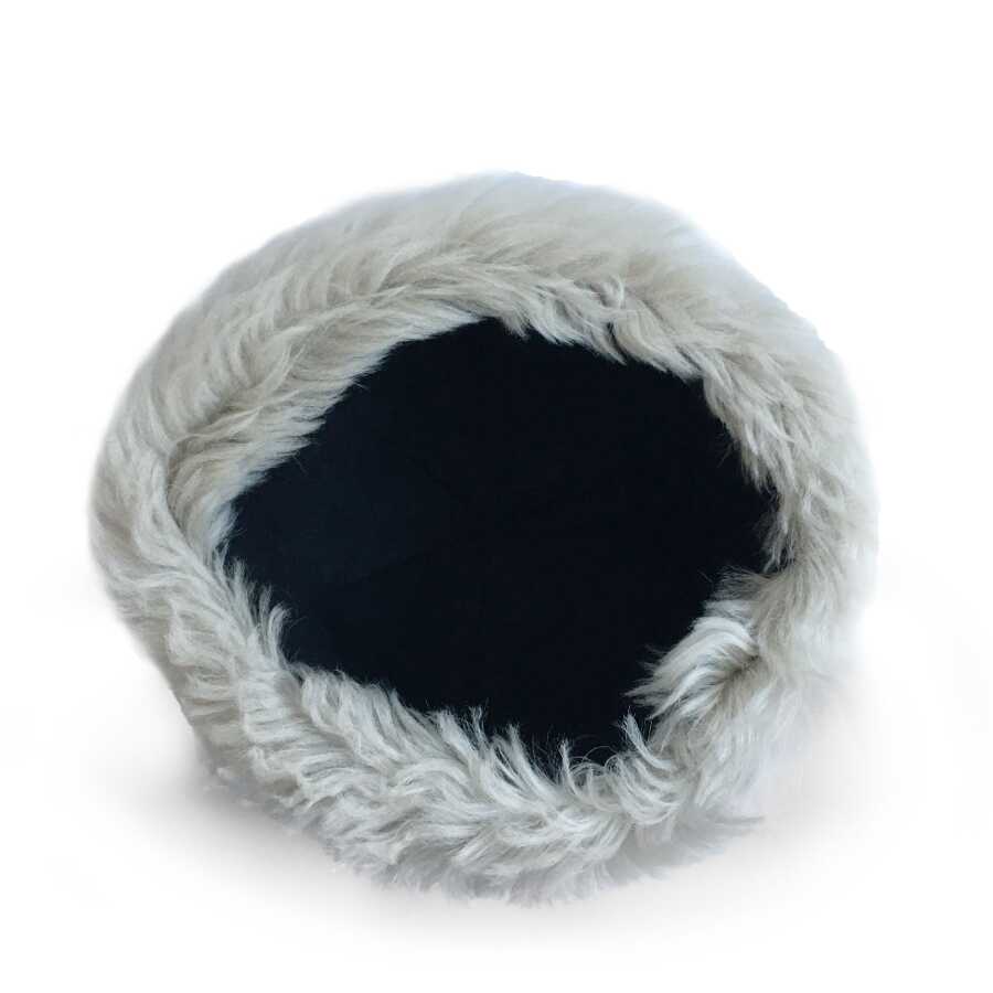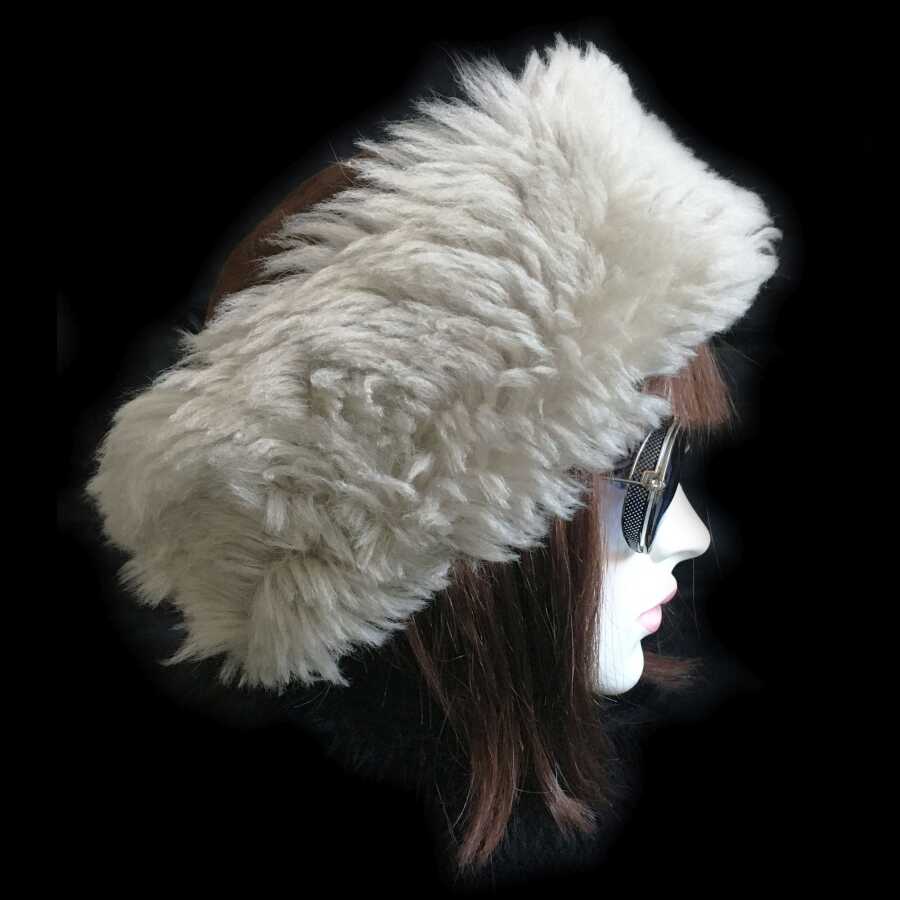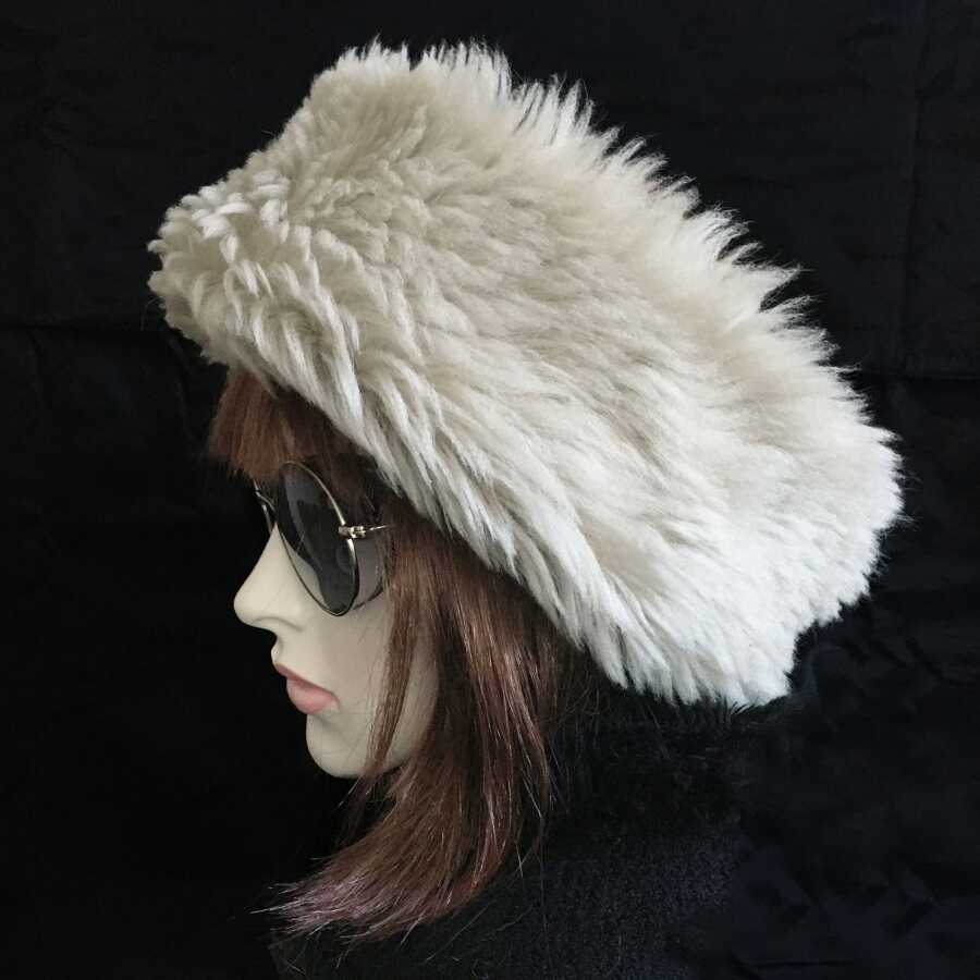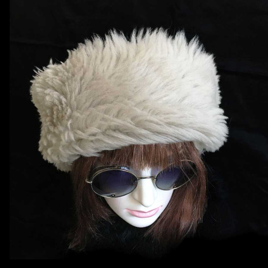 Kaliteli ve şık, el yapımı, kıvırcık bej kürklü gerçek deri kadın börk şapka