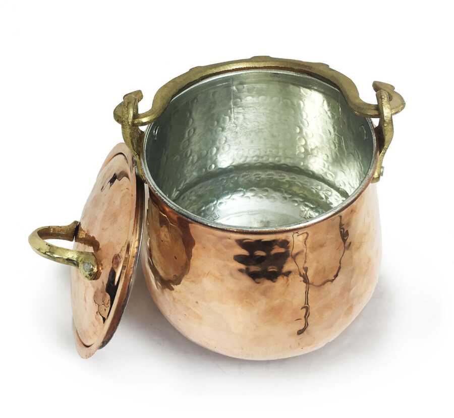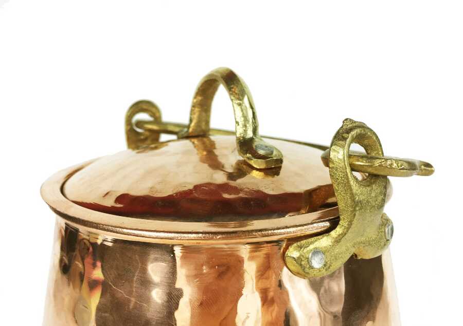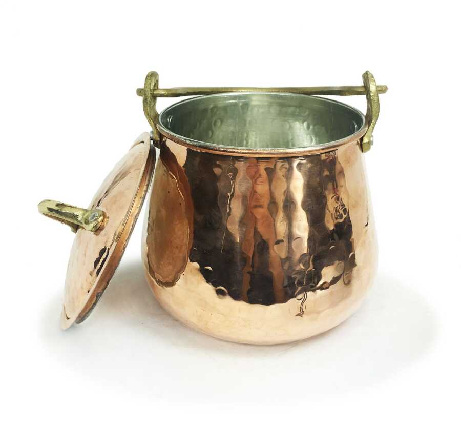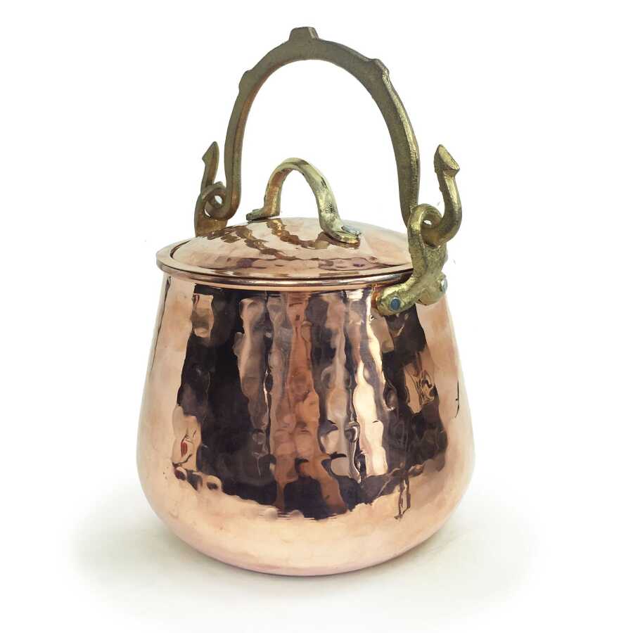 Eskitilmiş bakır deseni, pirinç renk tasıma sapı ile çok şık ve otantik bir tasarım