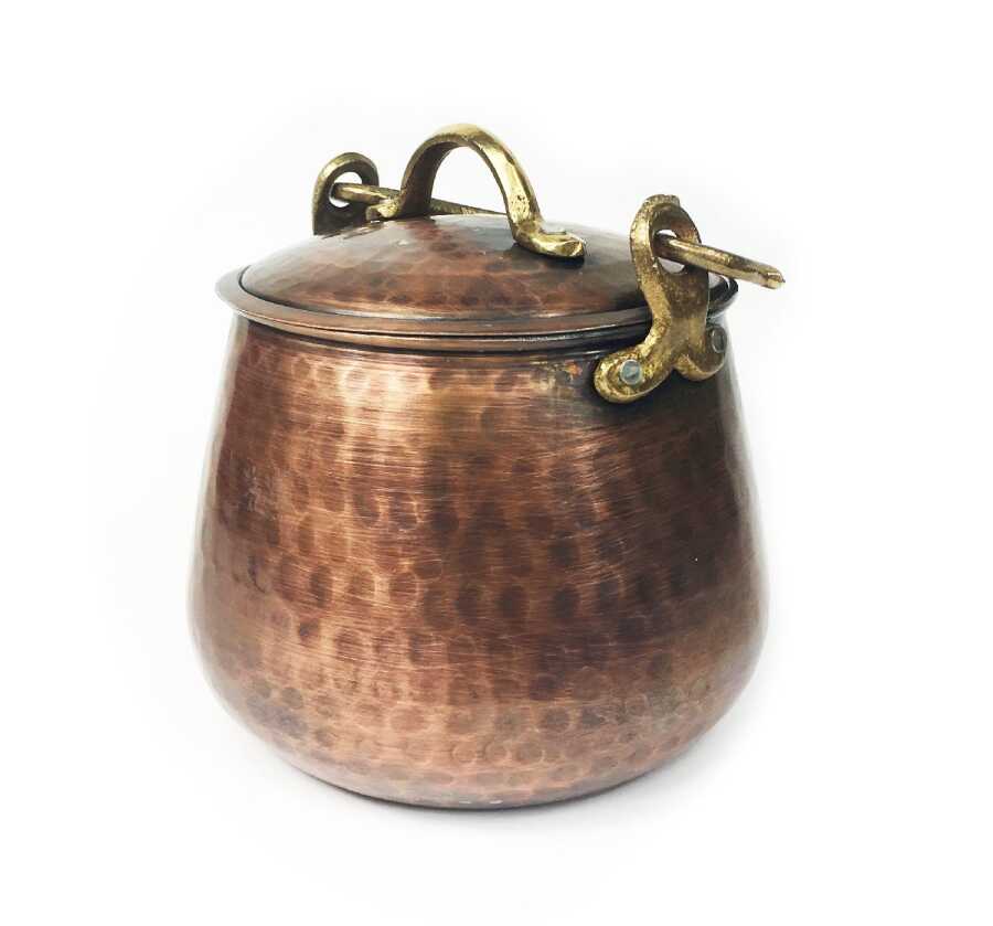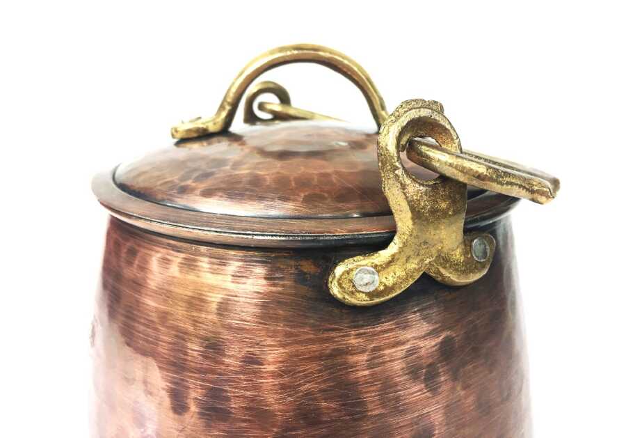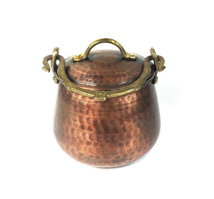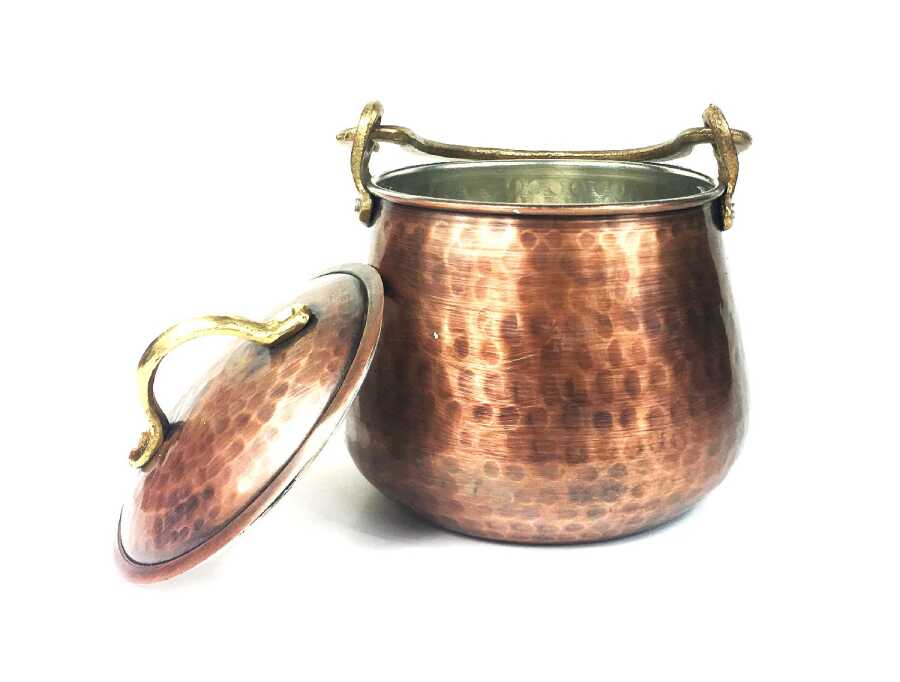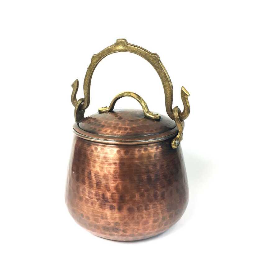 Eskitilmiş bakır deseni, pirinç renk tasıma sapı ile çok şık ve otantik bir tasarım