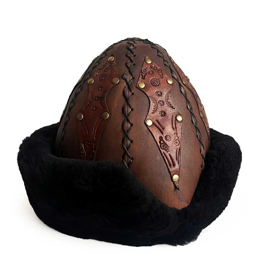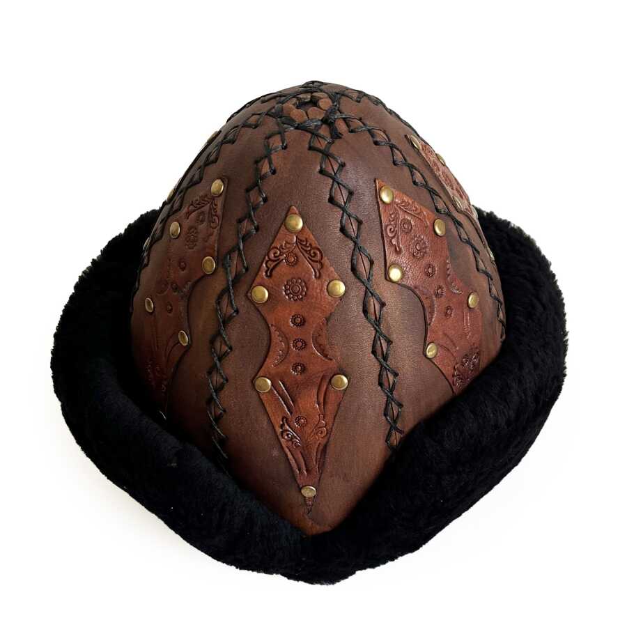 Kaliteli ve şık, geleneksel Ertuğrul Gazi hakiki deri Börk 57 cm
