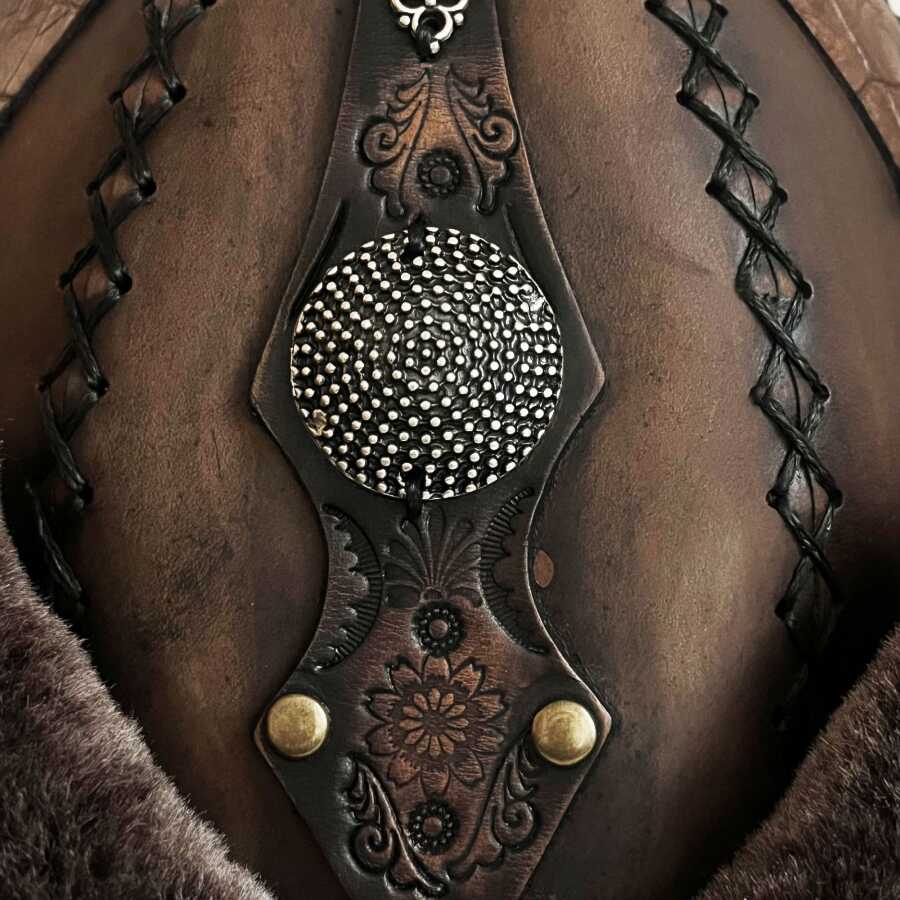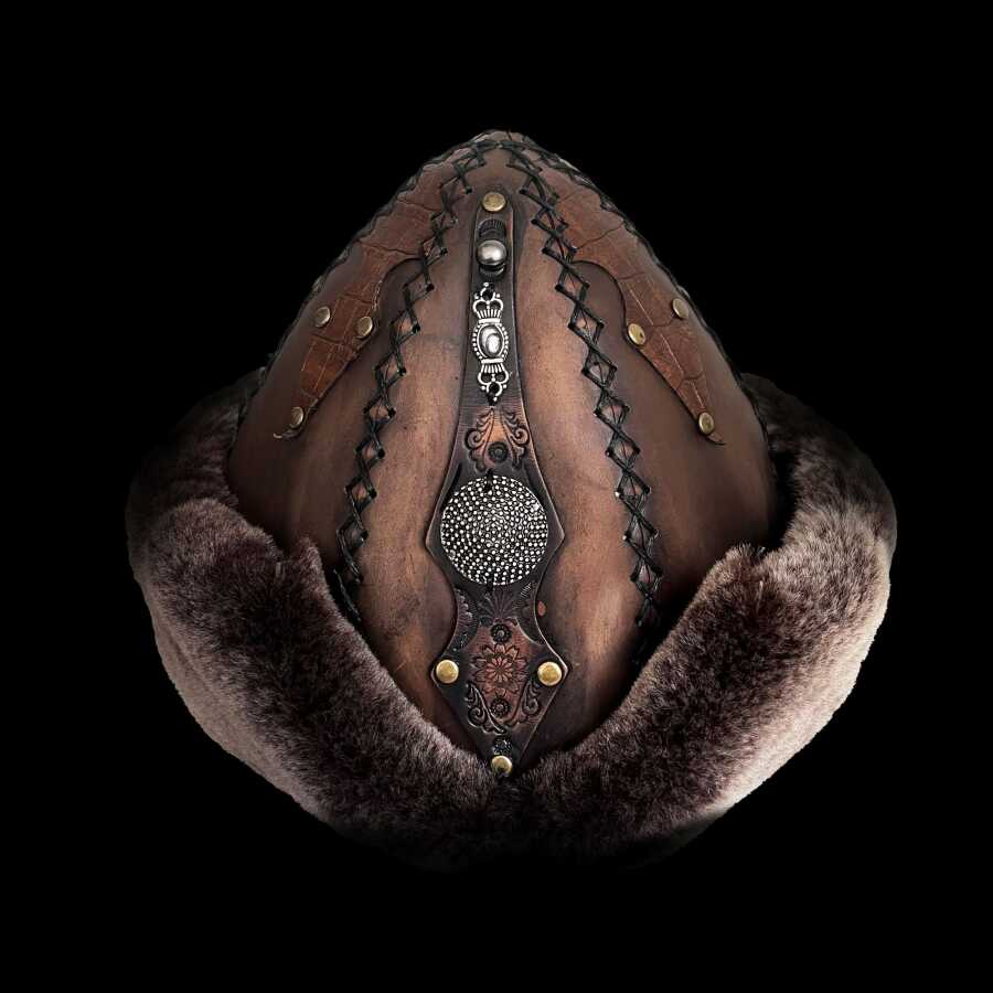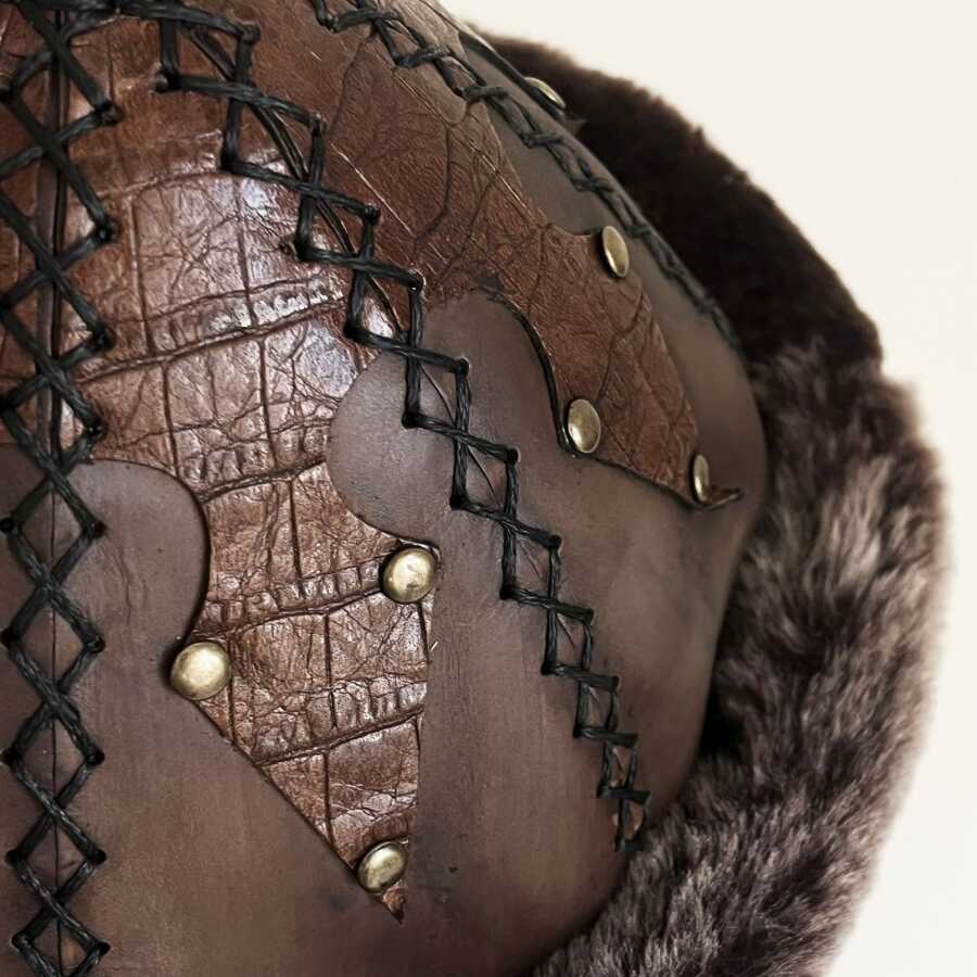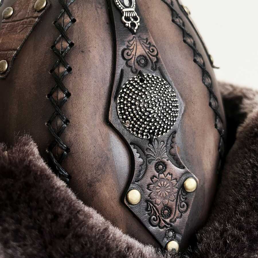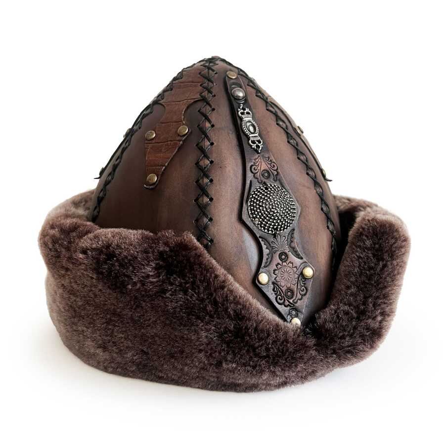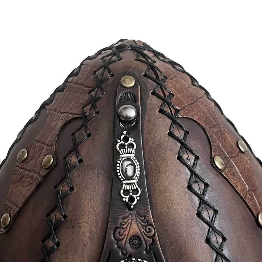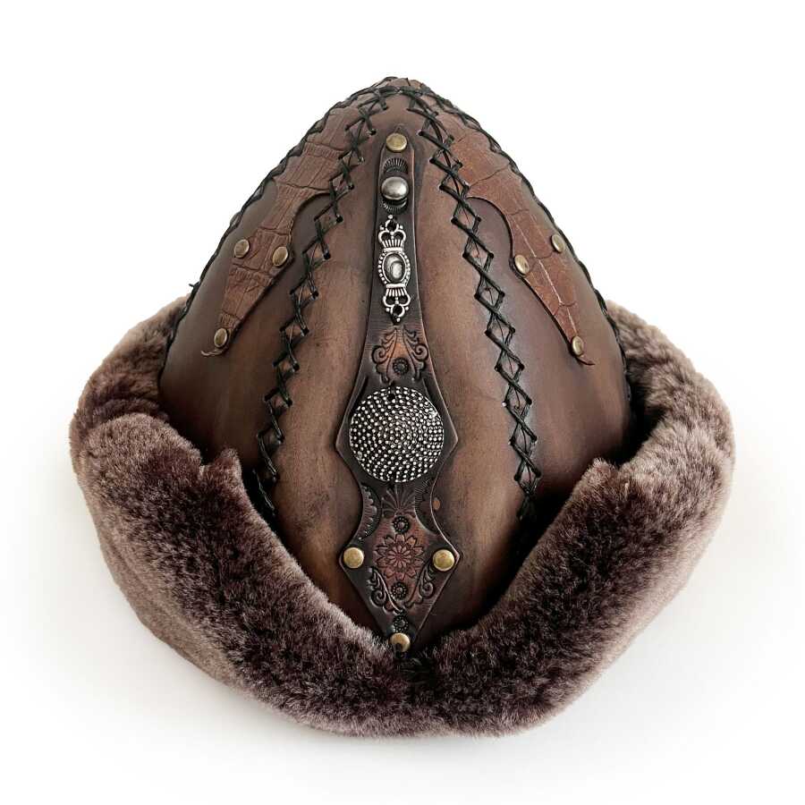Shark Anatolia Ertuğrul Gazi Zımbalı Metal Yuvarlak Broş Çapraz Dikiş Hakiki Deri Börk Şapka Kahve-60