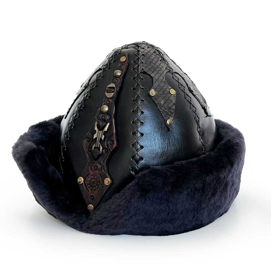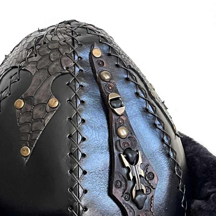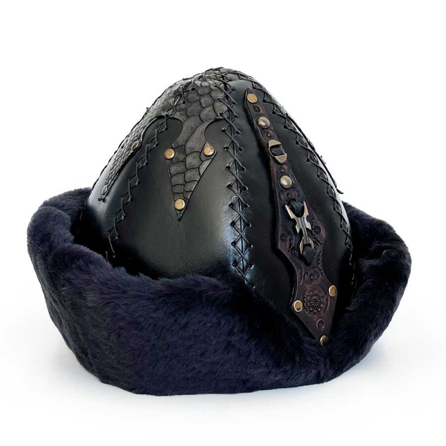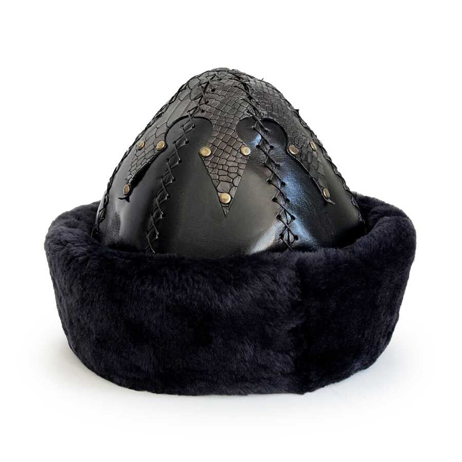 Kaliteli ve şık, geleneksel Ertuğrul Gazi çapraz dikişli hakiki deri Börk 60 cm Siyah