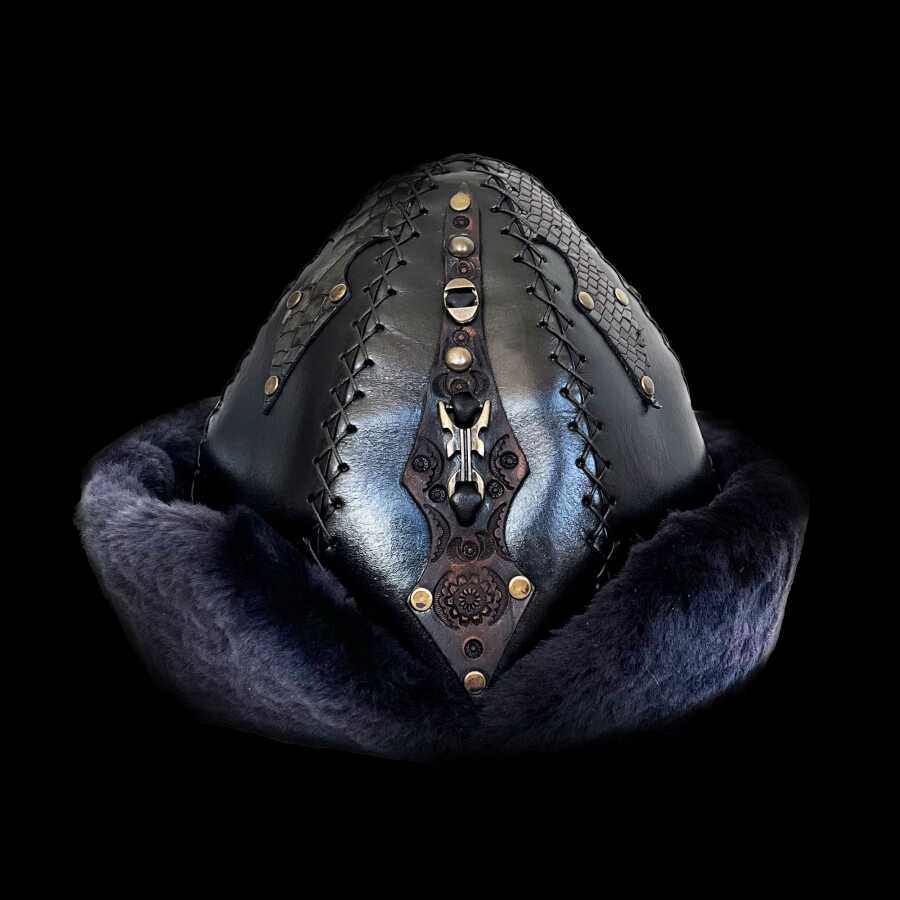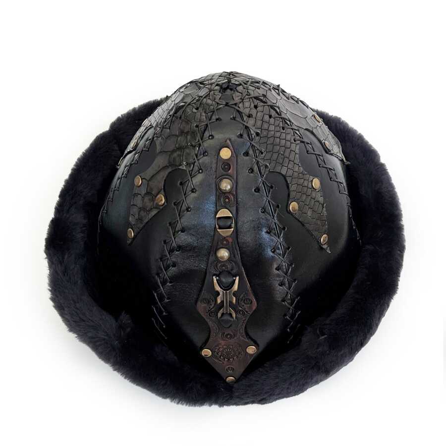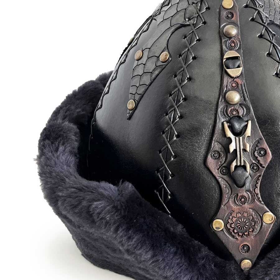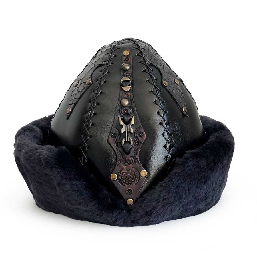 Kaliteli ve şık, geleneksel Ertuğrul Gazi çapraz dikişli hakiki deri Börk 60 cm Siyah
