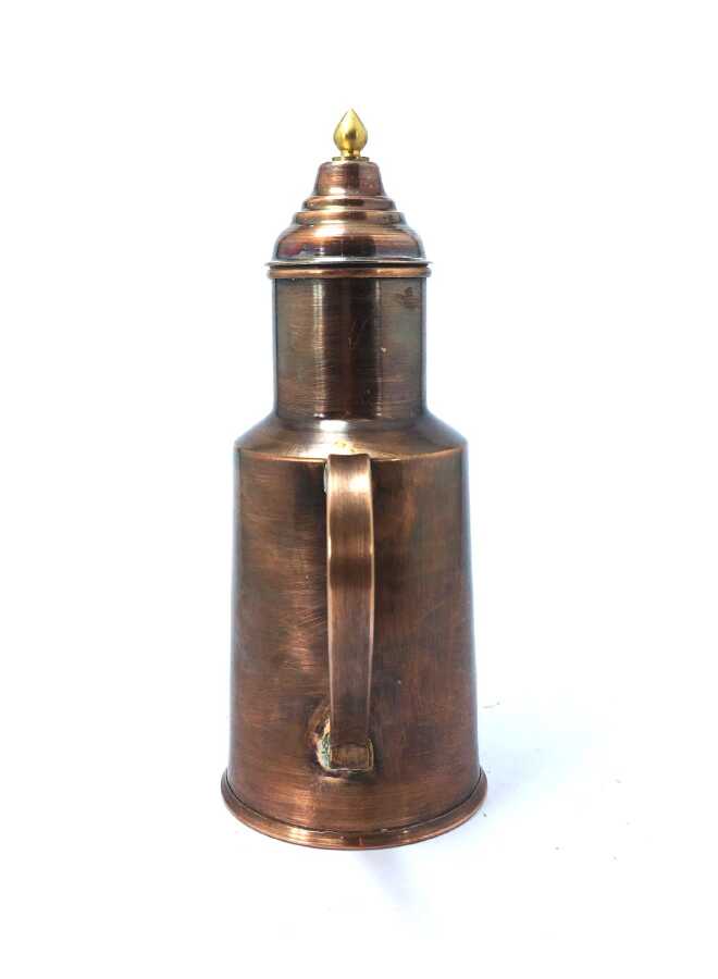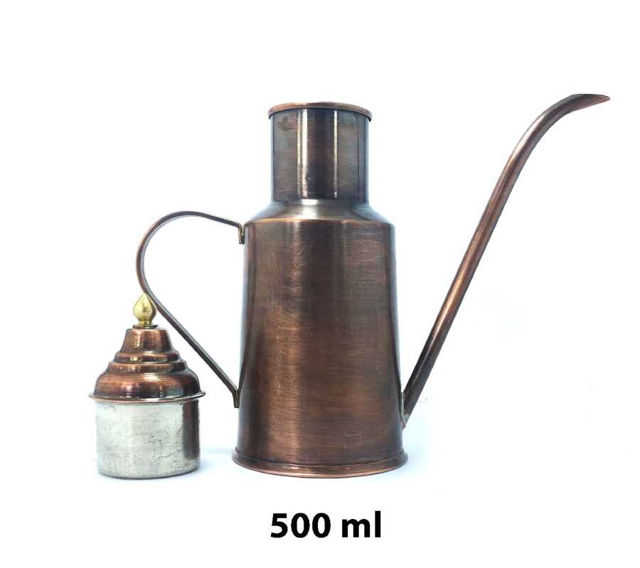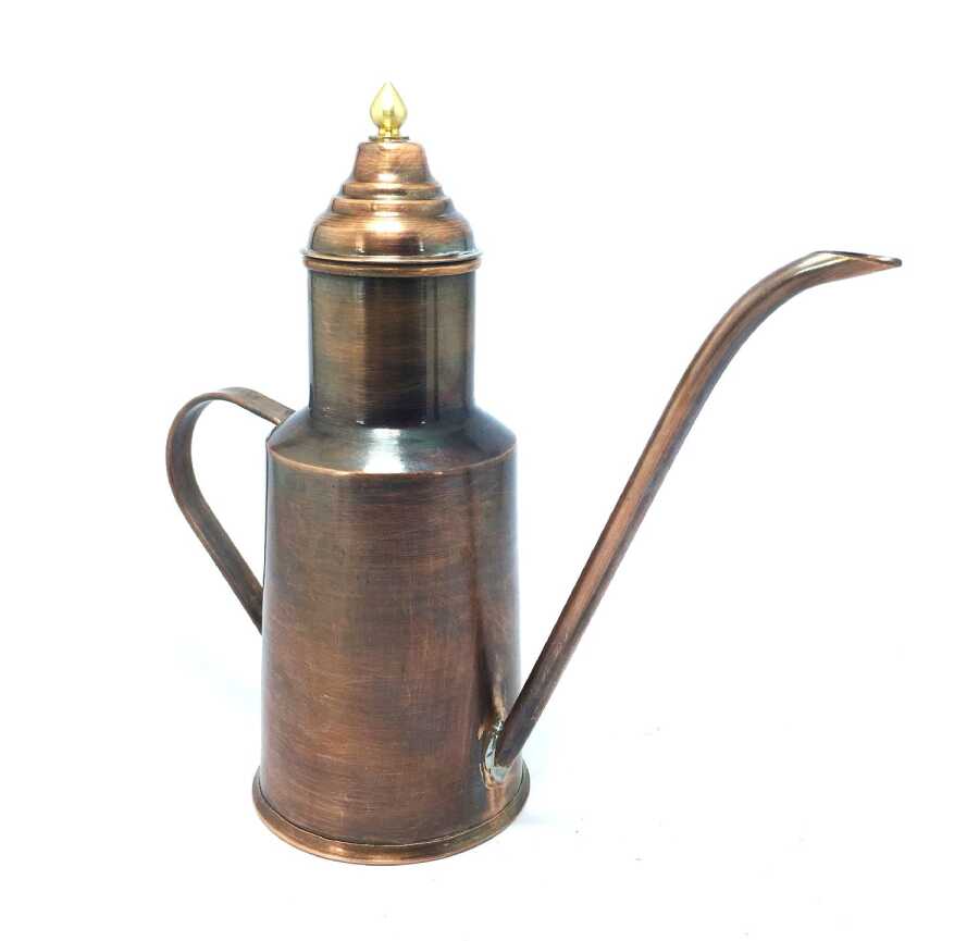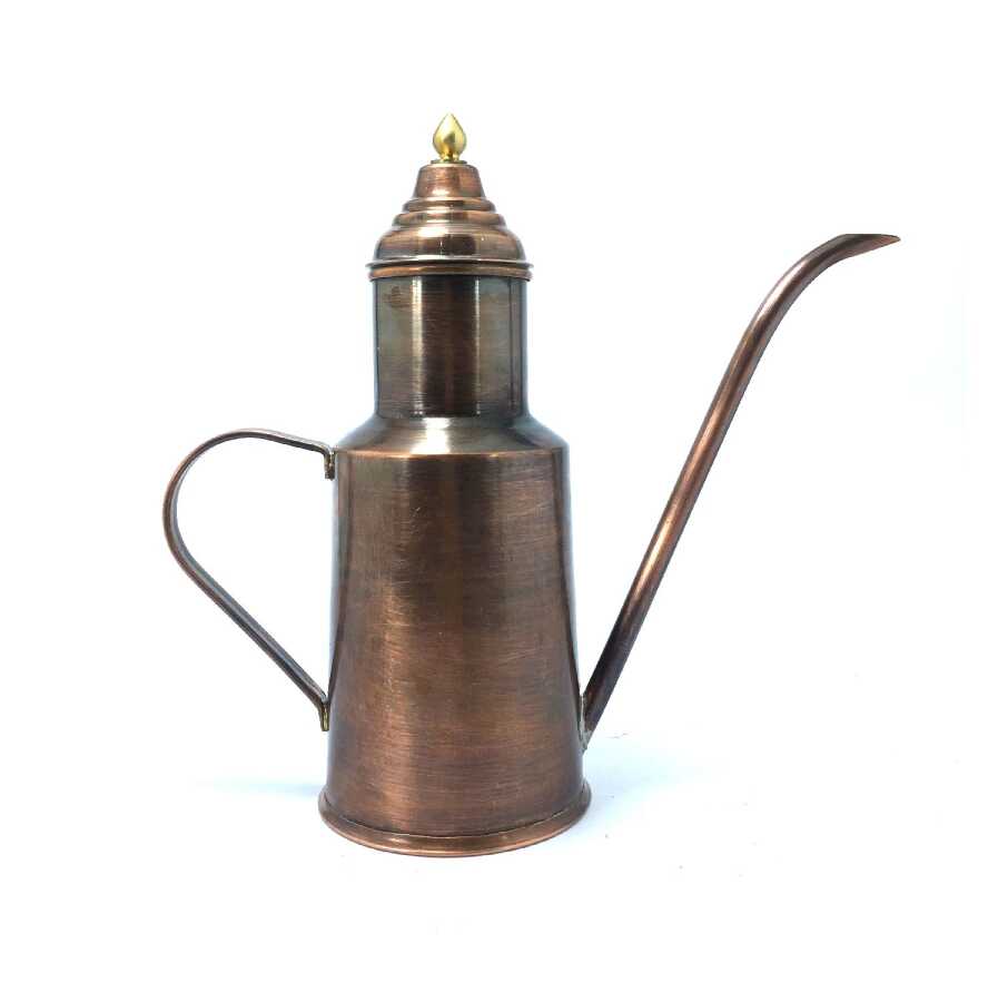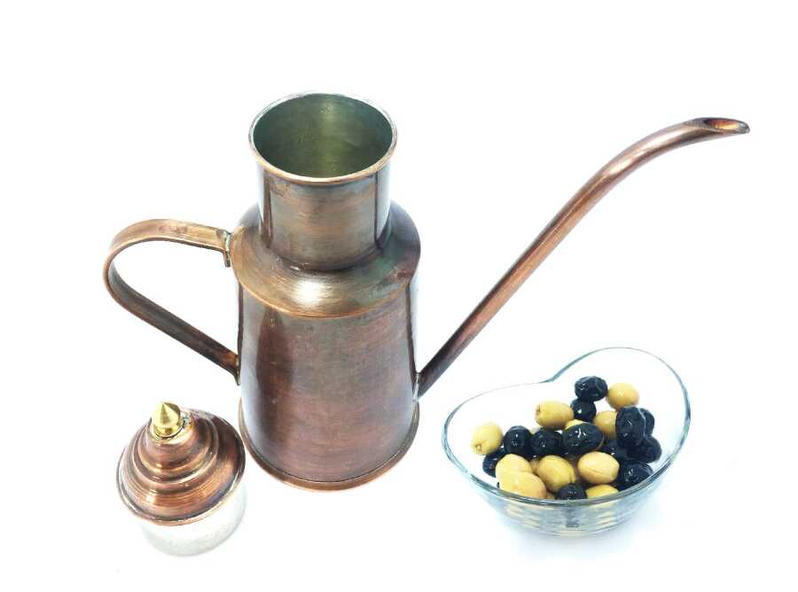 Eskitilmiş bakır rengi, pirinç renk kulplu kapağıyla çok şık bir yağdanlık