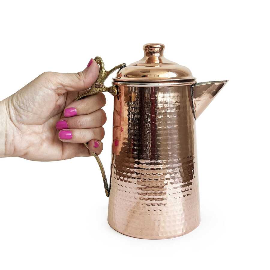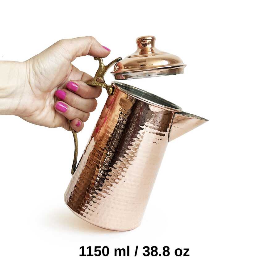 Kahramanmaraş'ın bakır zanaatkarları tarafından el işçiliği ile üretilmiş el yapımı bakır Kovan sütlük, sürahi