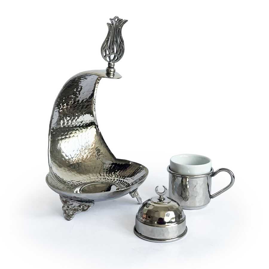 Shark Anatolia Hilal Bakır Kahve Sunum Seti Nikel Kaplama