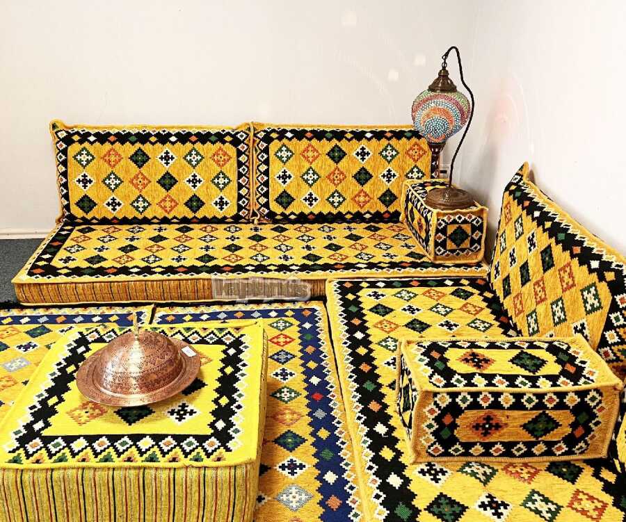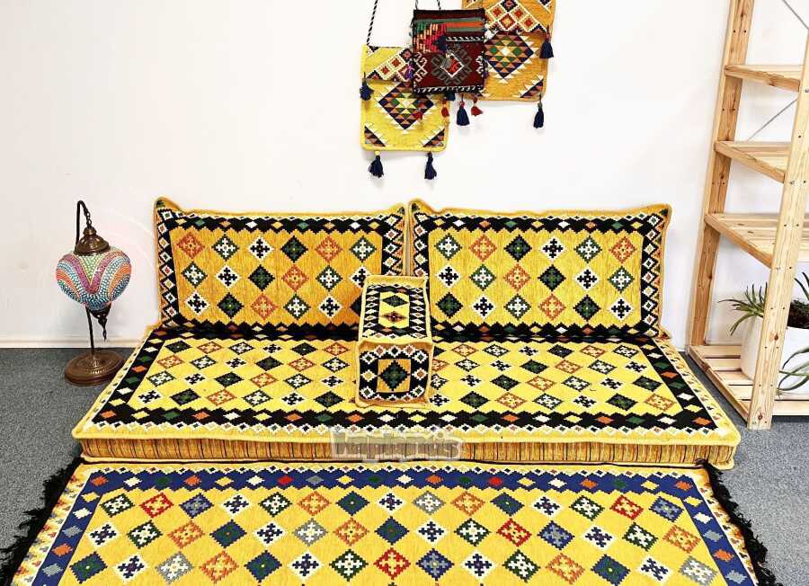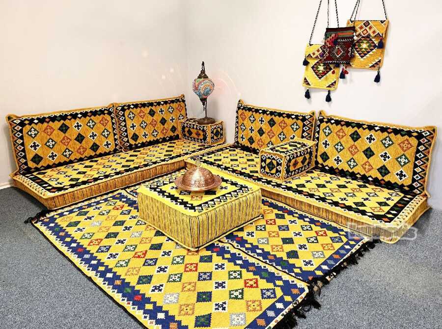 Takım, 2 adet sırt minderi, tek parça oturma minderi ve 1 adet kol minderinden oluşmaktadır.
