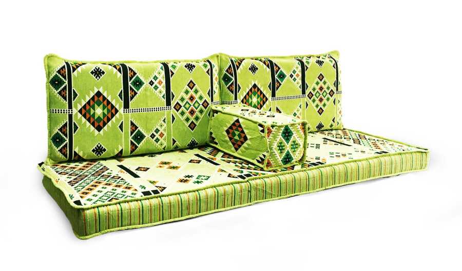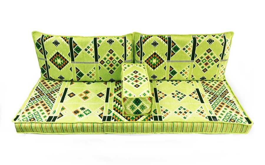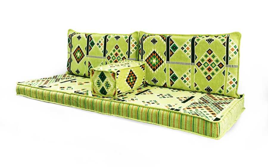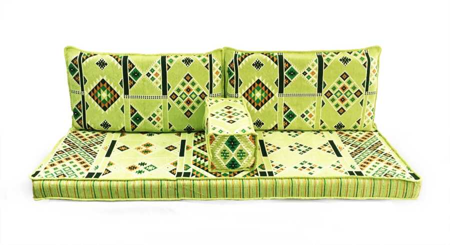 Takım, 2 adet sırt minderi, tek parça oturma minderi ve 1 adet kol minderinden oluşmaktadır.