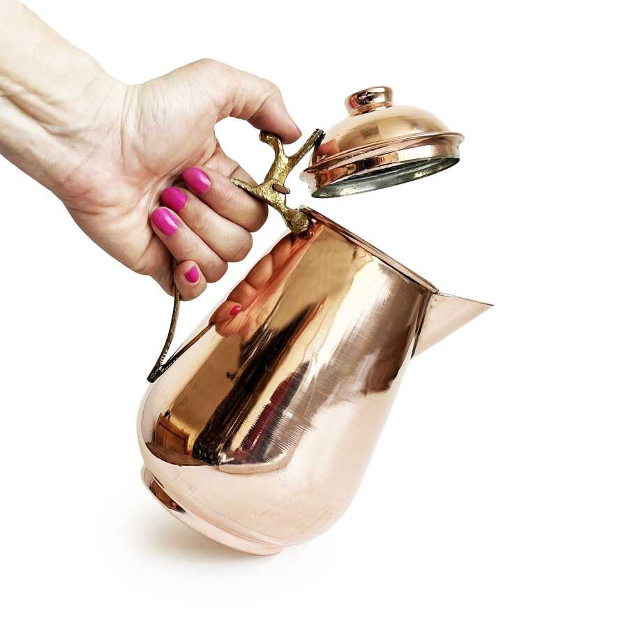 Kahramanmaraş'ın bakır zanaatkarları tarafından el işçiliği ile üretilmiş el yapımı bakır Kovan sütlük, sürahi