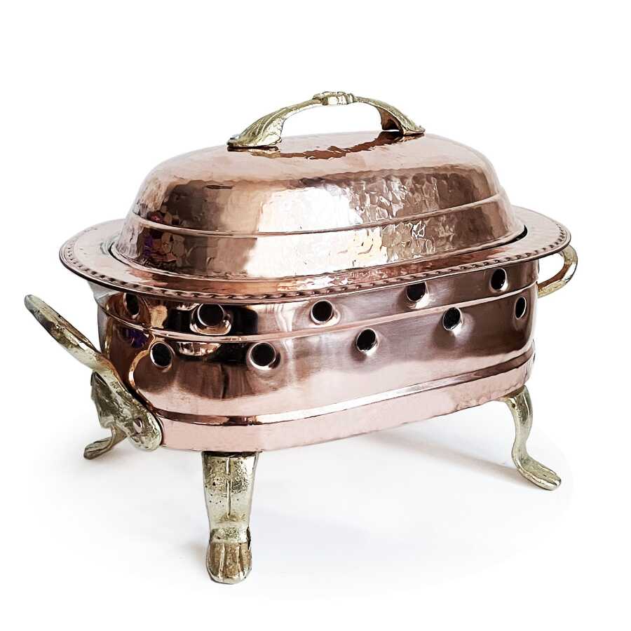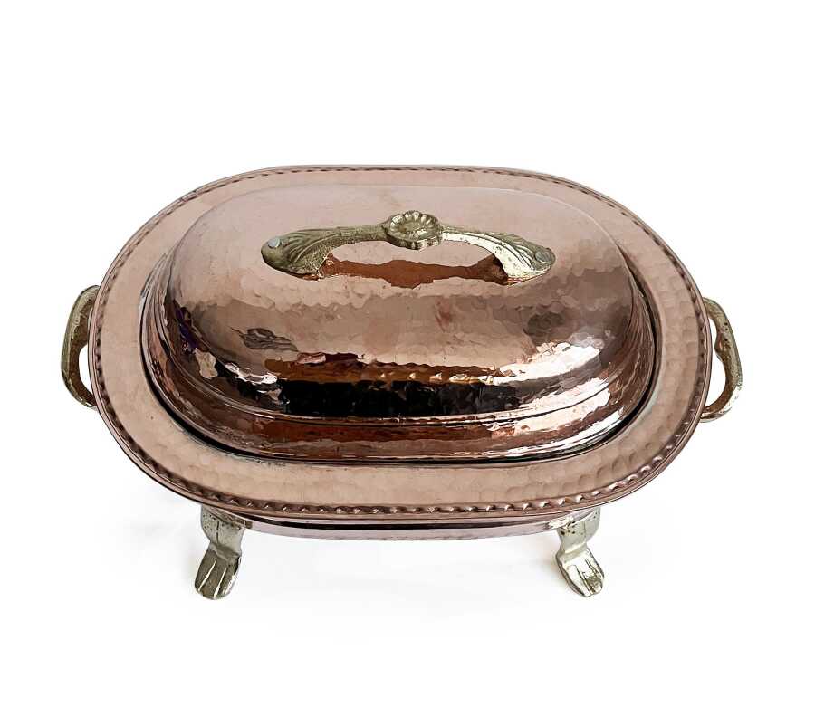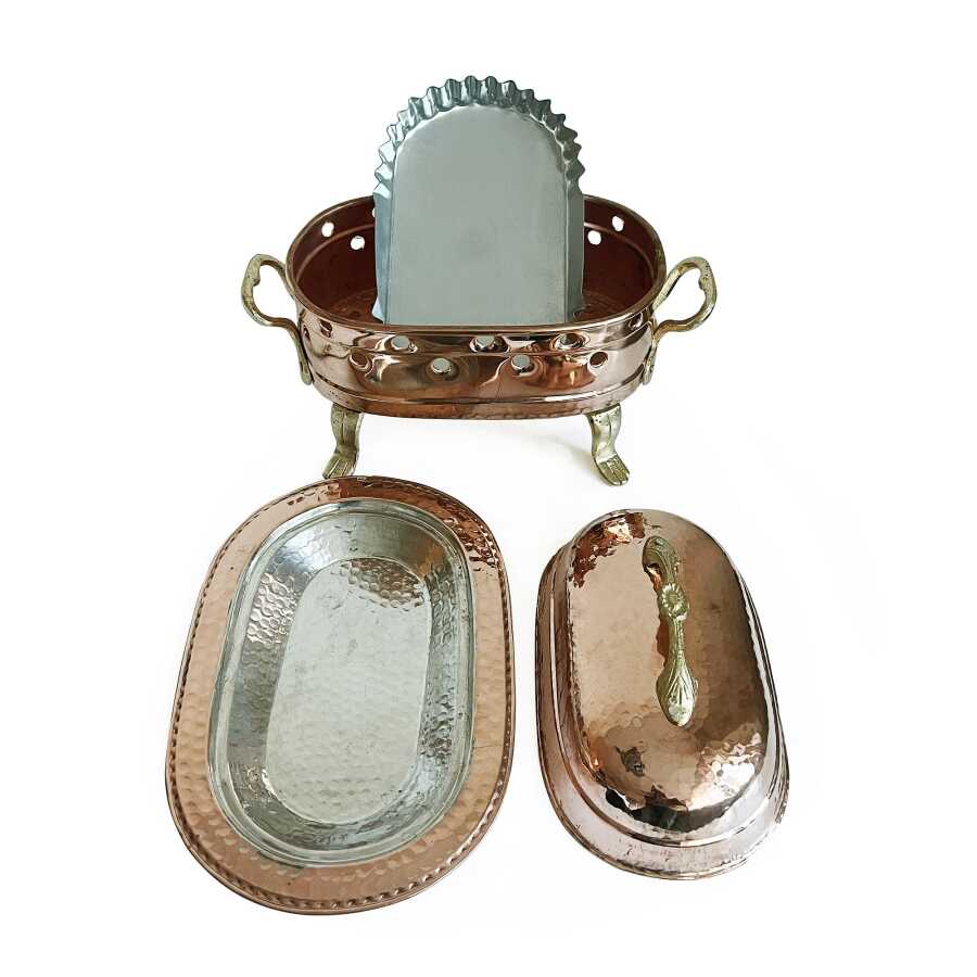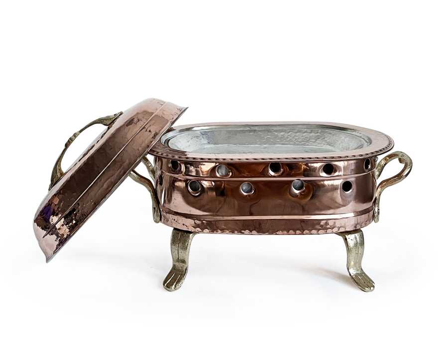 Közlü Kapaklı Bakır Kebaplık Sunum Tepsisi 30 cm