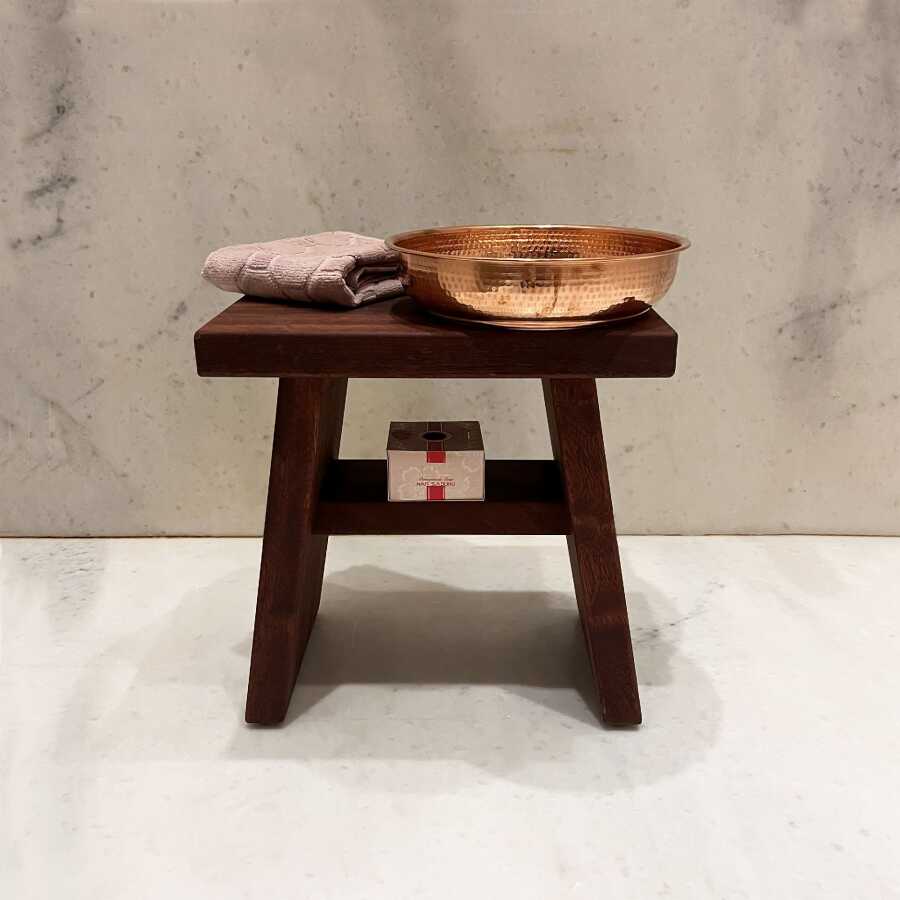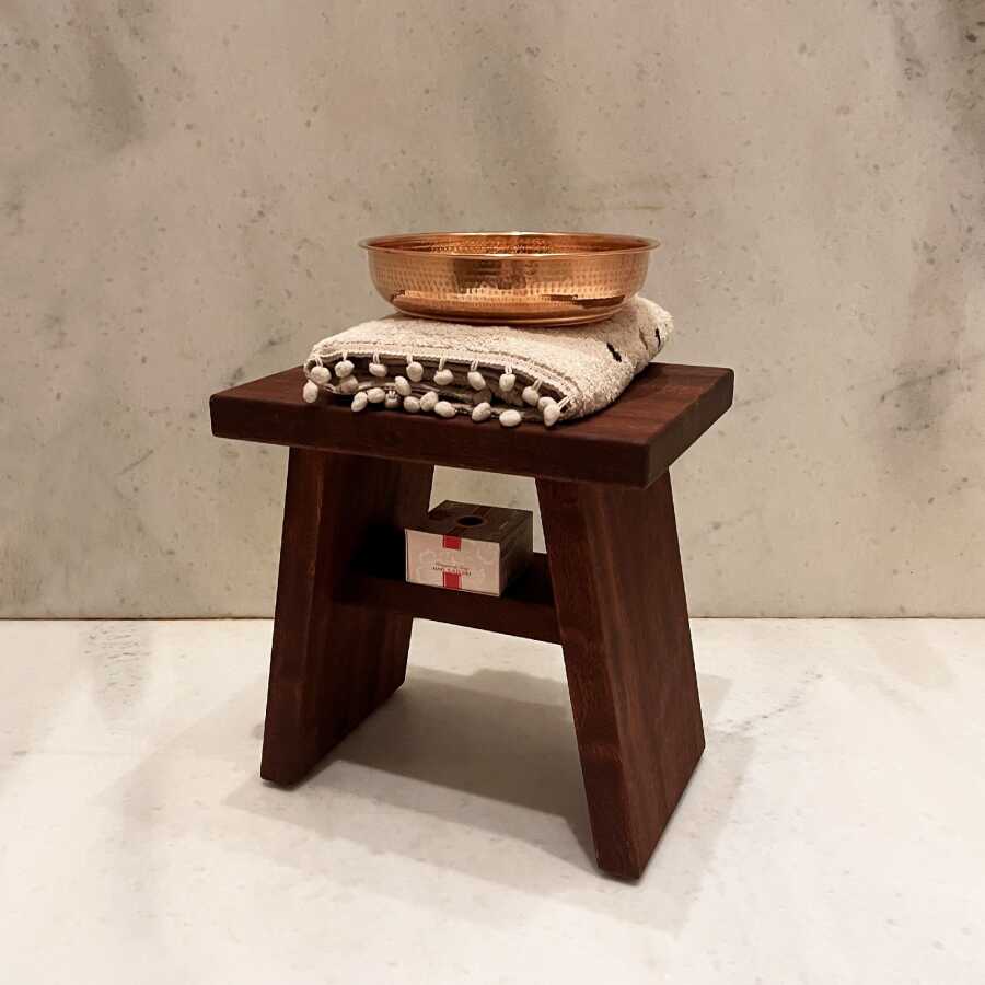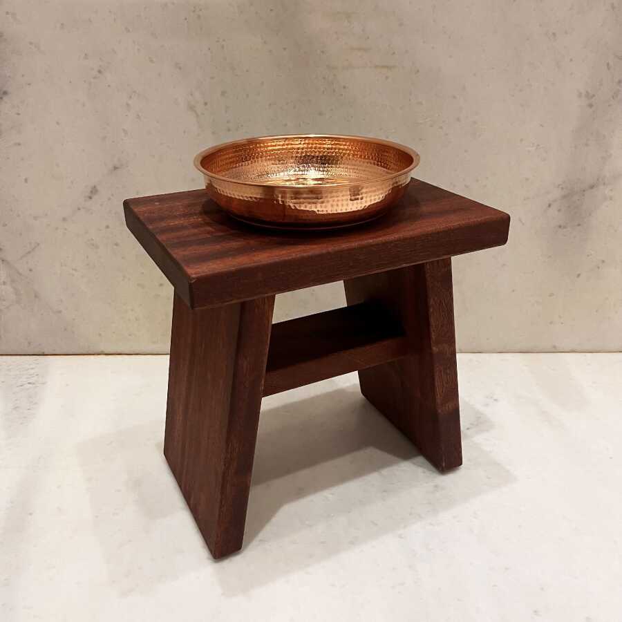 Paket İçeriği: 1 adet Banyo Taburesi (Maun) + 1 adet Bakır Hamam Tası (Kızıl) + 1 adet Hediye Havlu ve Sabun