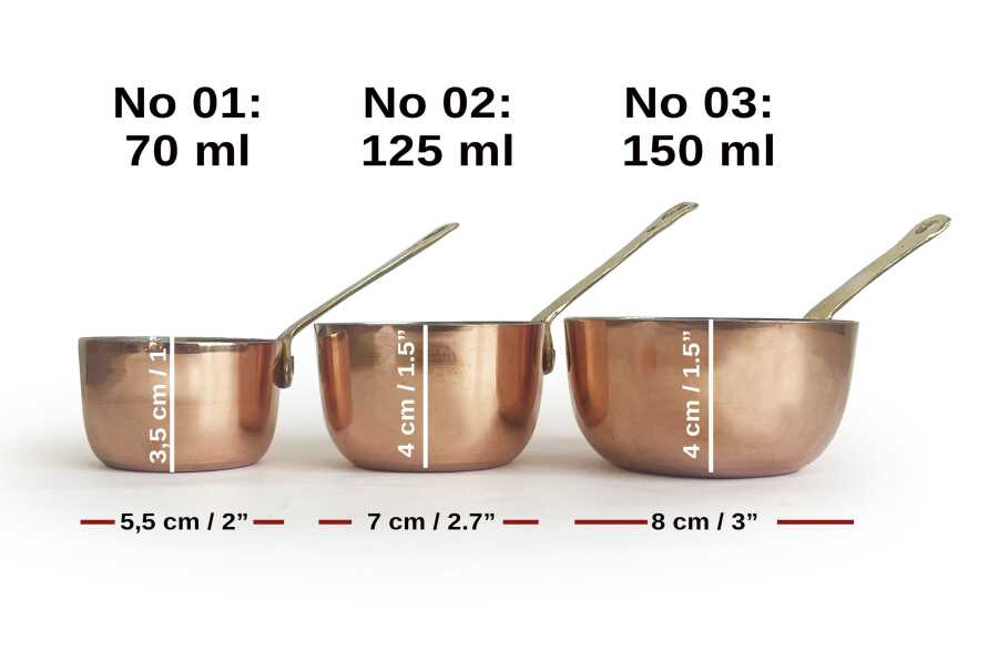 No 3: 8 x 4 cm (3"x1,5") / 110 gr / 150 ml