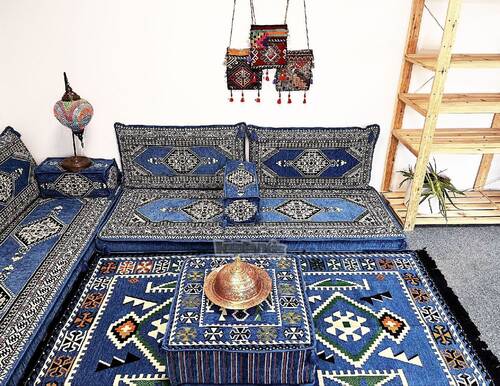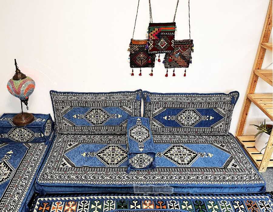 Pamuk - Polyester - PP karışımlı Anadolu desen dokumalı ikili sedir takımı.