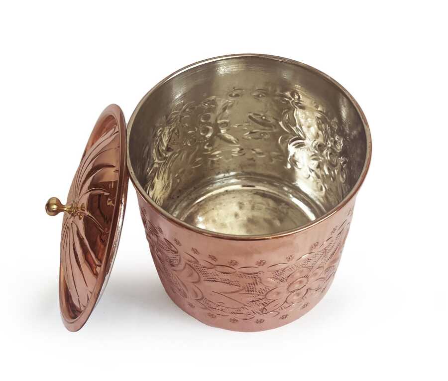 Kahramanmaraş'ın bakır zanaatkarları tarafından el işçiliği ile üretilmiş el işleme bakır Safran baharatlık