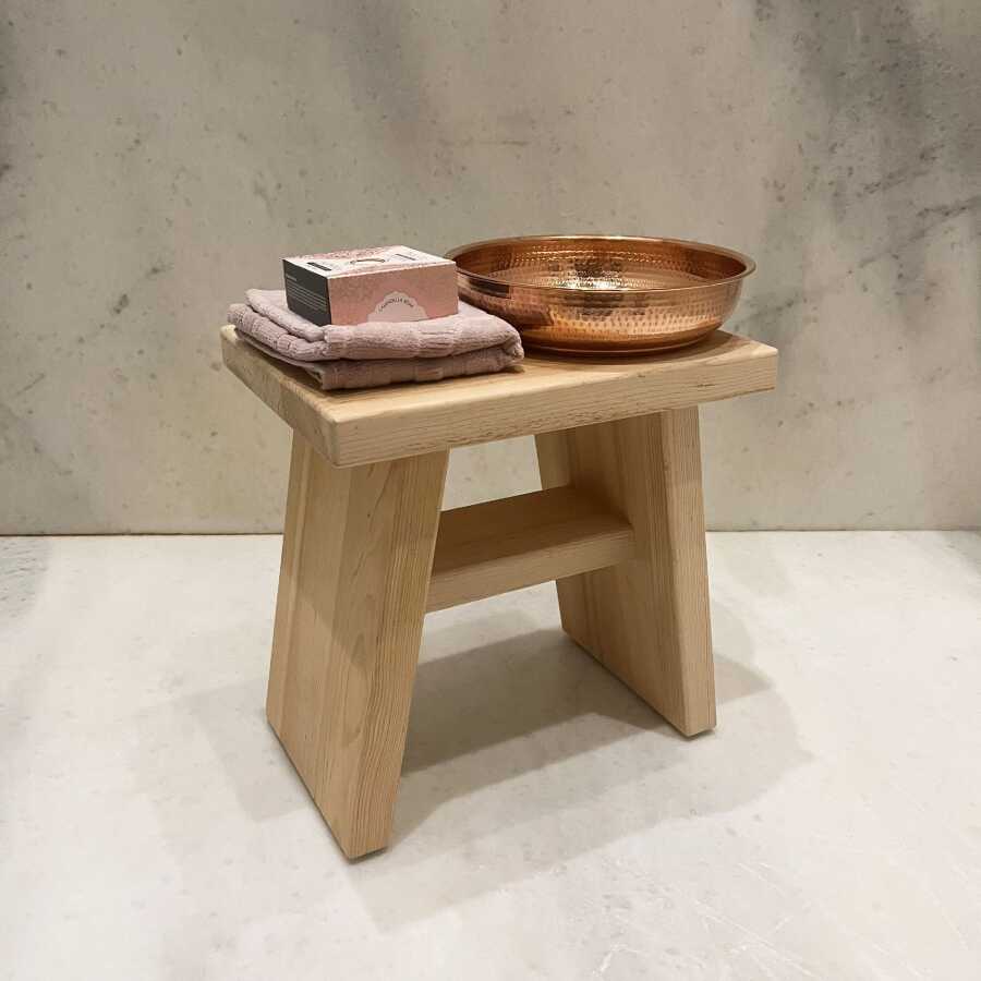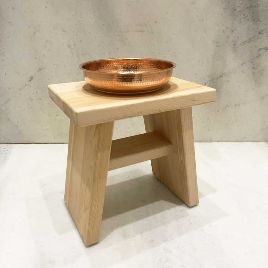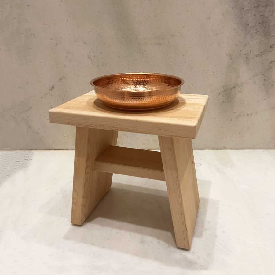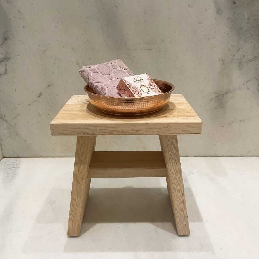 Paket İçeriği: 1 adet Banyo Taburesi (Sedir) + 1 adet Bakır Hamam Tası (Kızıl) + 1 adet Hediye Havlu ve Sabun Seti