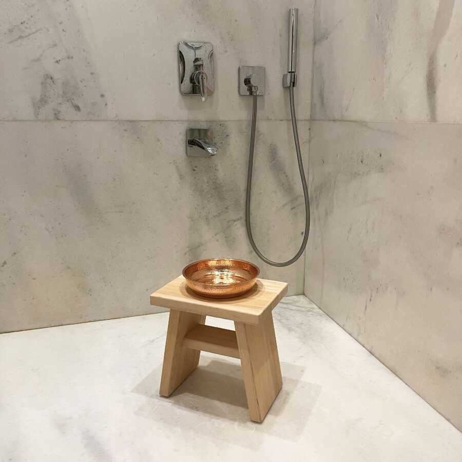 Shark Anatolia Sedir Ahşap Banyo Taburesi Oturak ve Kızıl Bakır Hamam Tası Seti