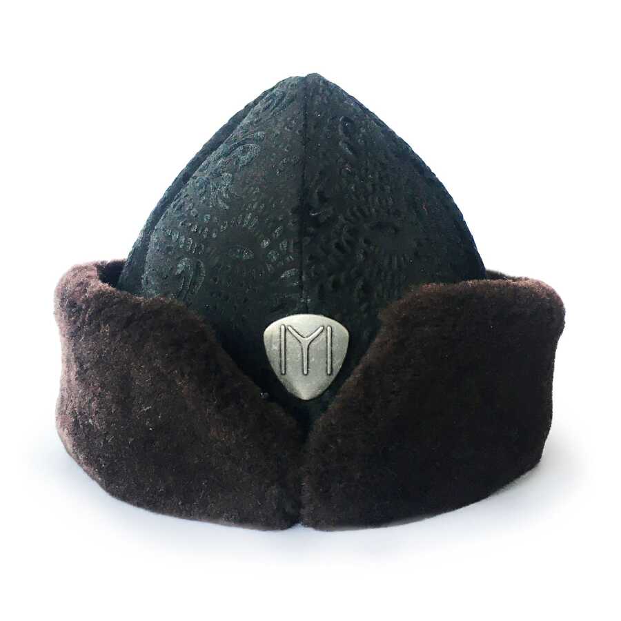 Kaliteli ve şık, geleneksel Kayı Boyu tamgalı Ertuğrul Gazi Deri Siyah Kırçıllı Nubuk Börk