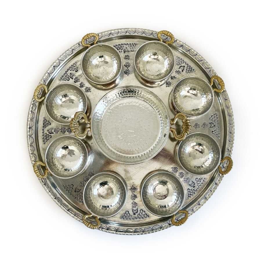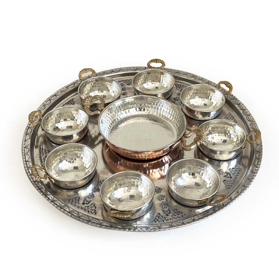 Bakır kaselerin altı yuvarlaktır ve tepsideki özel yuvasına oturur
