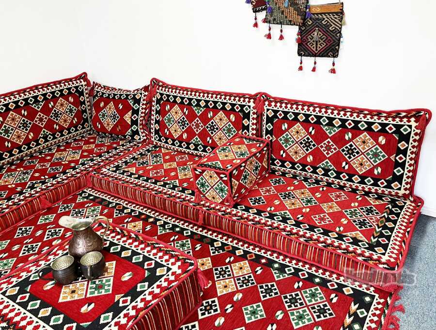 Takım, 2 adet sırt minderi, tek parça oturma minderi ve 1 adet kol minderinden oluşmaktadır.