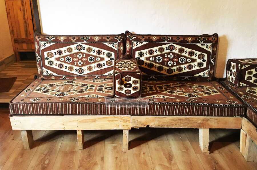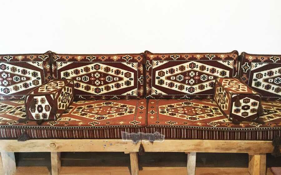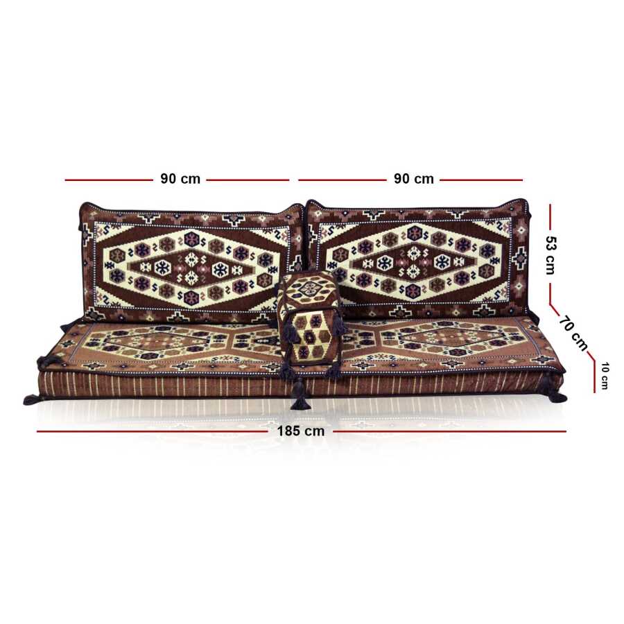 Shark Anadolu Yörük Şark Köşesi İkili Sedir Takımı Kahve PP - Pamuk - Polyester karışımlı yörük desen dokumalı