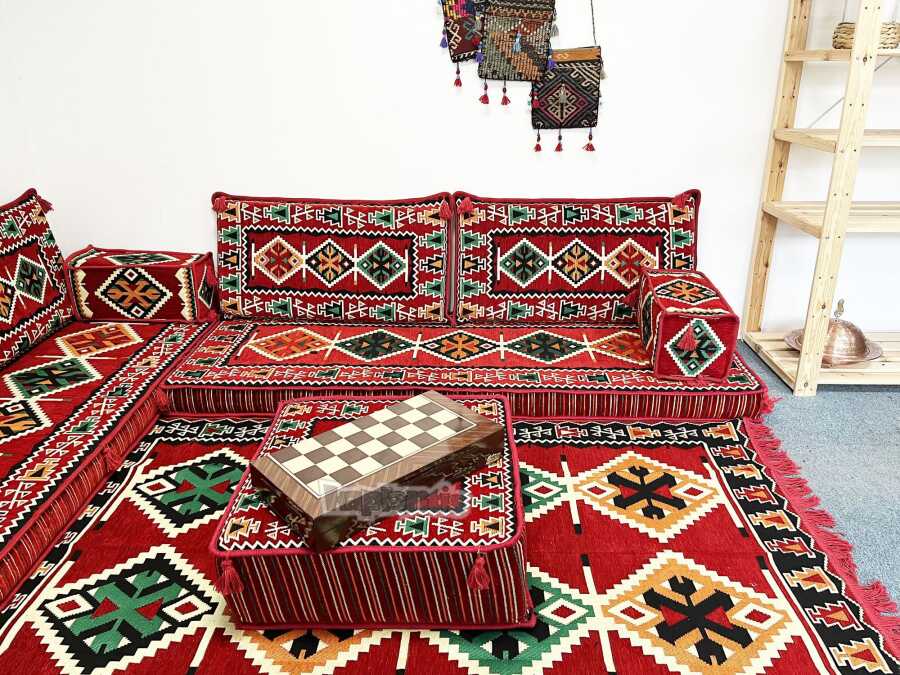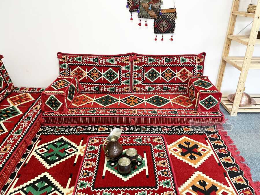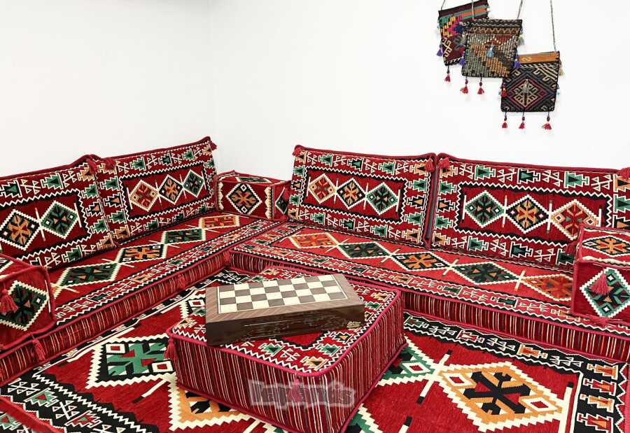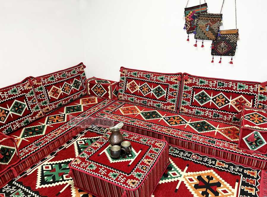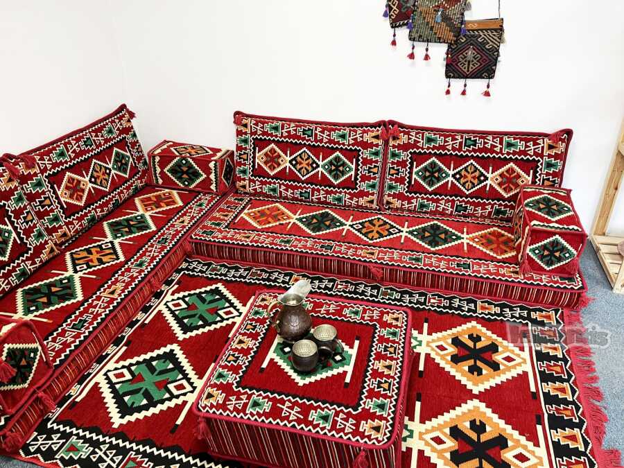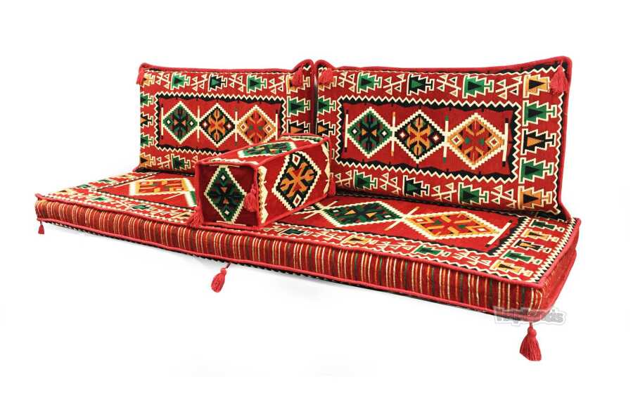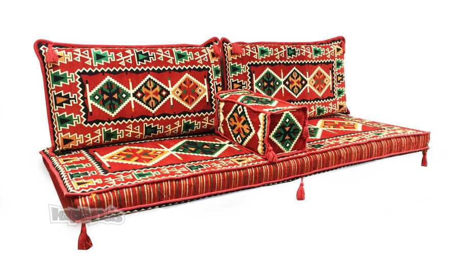 Takım, 2 adet sırt minderi, tek parça oturma minderi ve 1 adet kol minderinden oluşmaktadır.