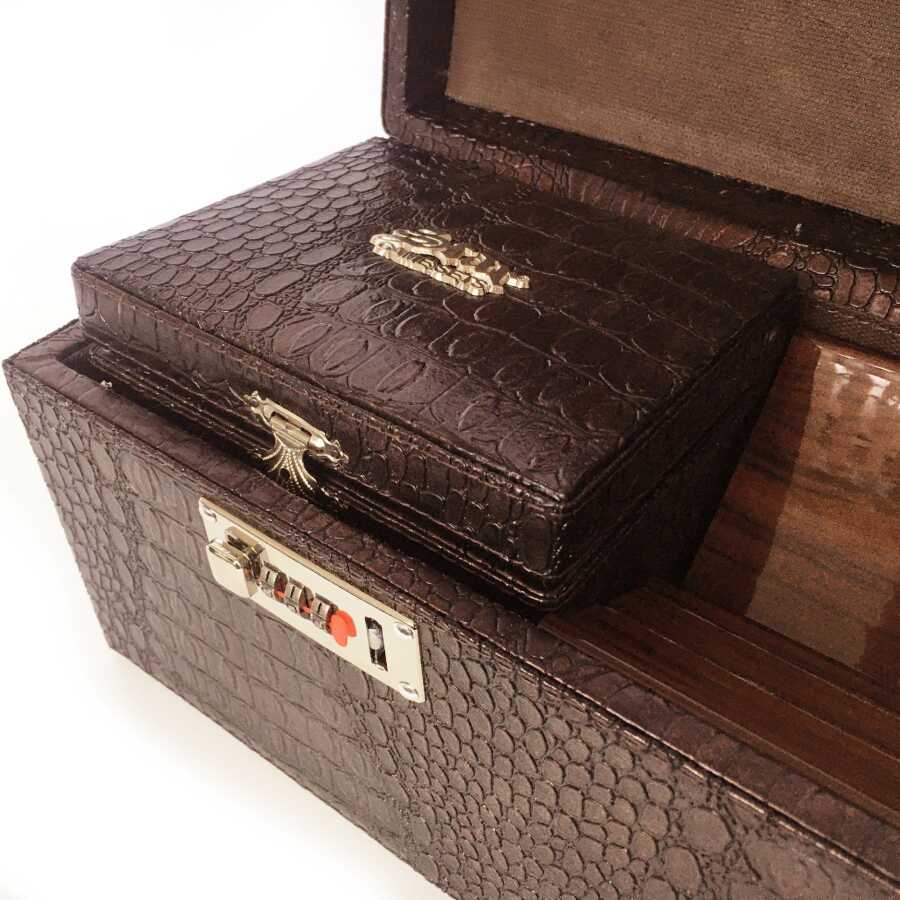1.Sınıf suni deri, taşıma kulplu özel şifreli kilit sistemli okey kutusu