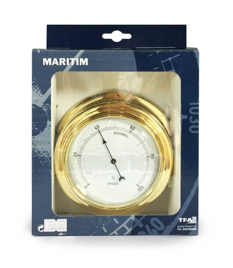 Gemi, yat, tekneler için ideal çok şık pirinç çerçeveli Analog "MARITIM" nem ölçer