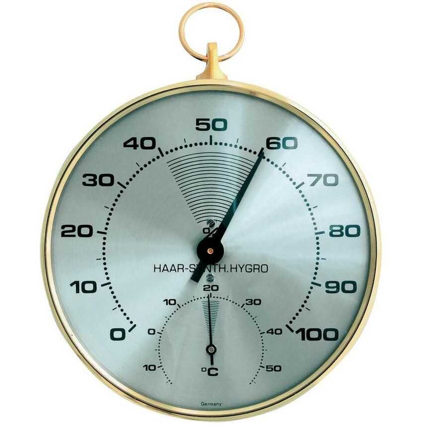 Duvara asılabilir, pirinç yüzeyli, mekanik, ibreli, çok şık ve kaliteli, Alman malı termometre ve nem ölçer.