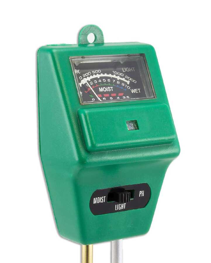 Bu kombinasyon test cihazı ile, bitkilerin yeterince su ve ışığa sahip olup olmadığını ve toprak pH'ının belirli bir bitki için uygun olup olmadığını ölçebilirsiniz.
