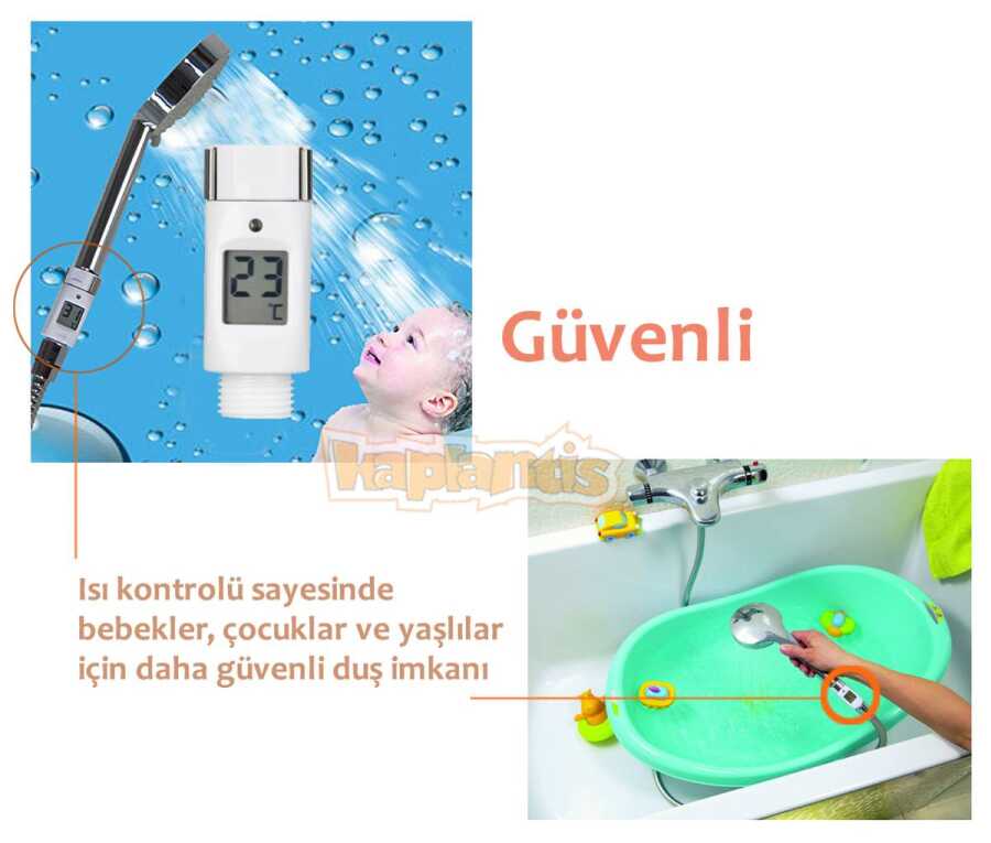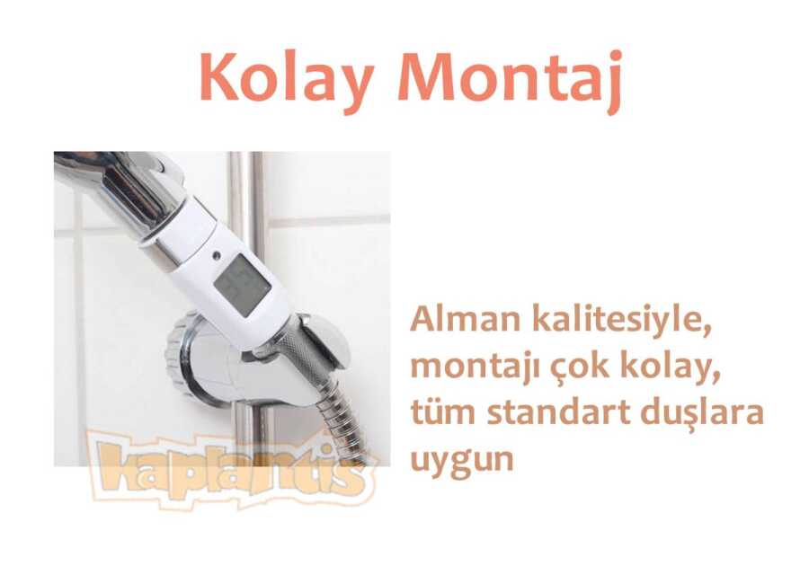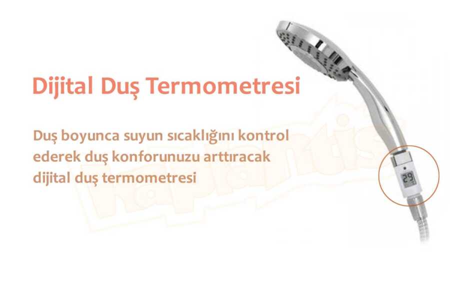 Duş boyunca suyun sıcaklığını kontrol ederek duş konforunuzu arttıracak dijital duş termometresi.