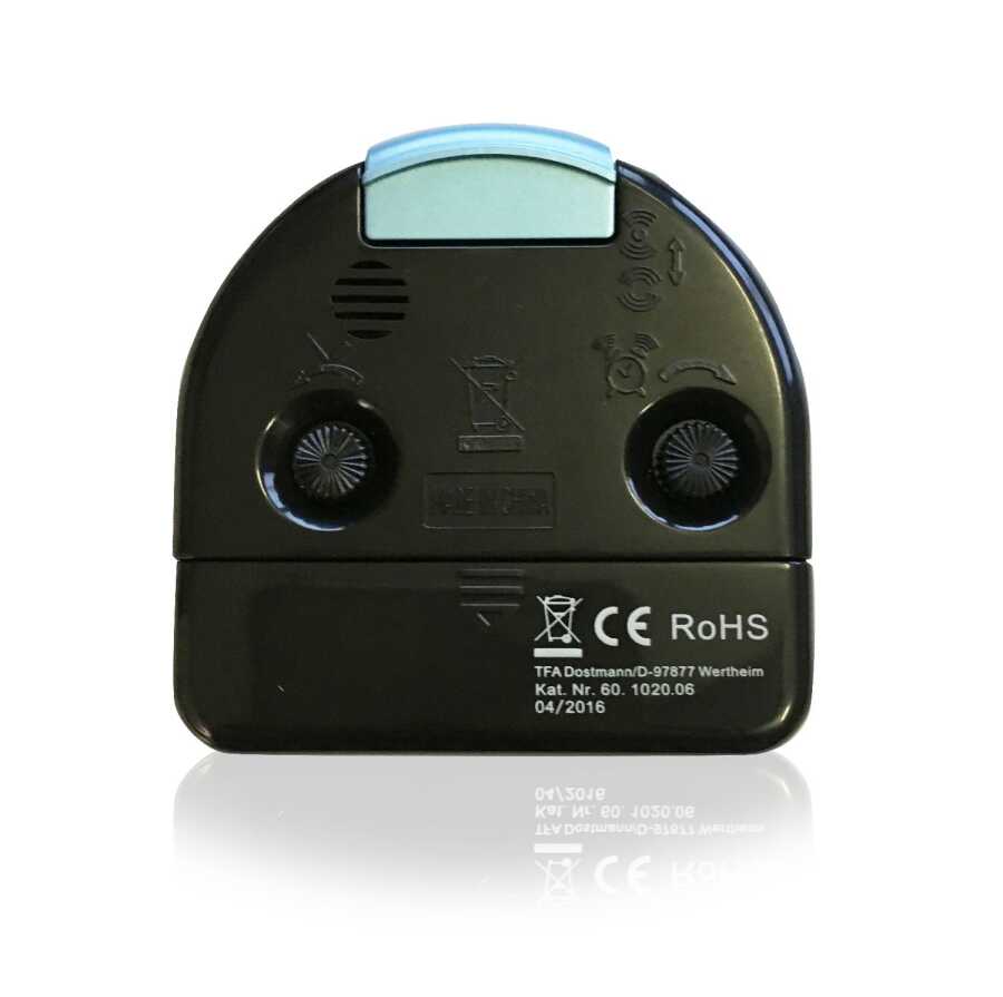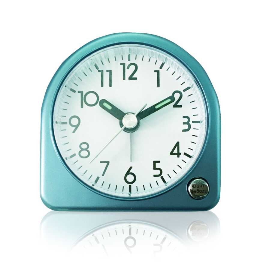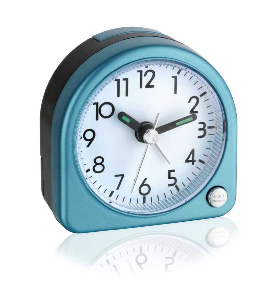 Küçük boyutlu, analog ekranlı, ekran aydınlatmalı elektronik alarmlı saat.