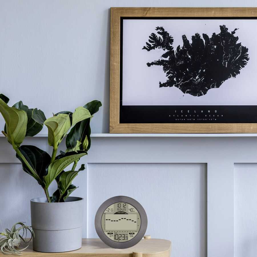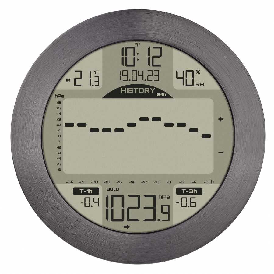 +/- 1 hPa toleransıyla (çözünürlük 0,1)hava basıncı hakkında doğru bilgi sağlar ve bunu 1, 3 veya 24 saat boyunca çok ayrıntılı bir grafikte görüntüler