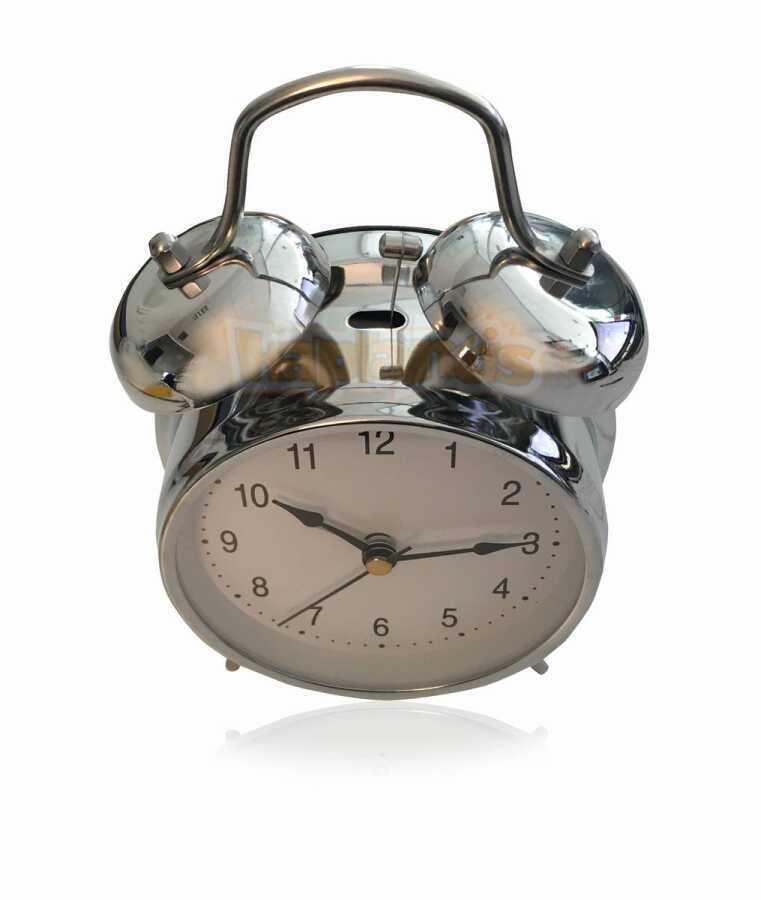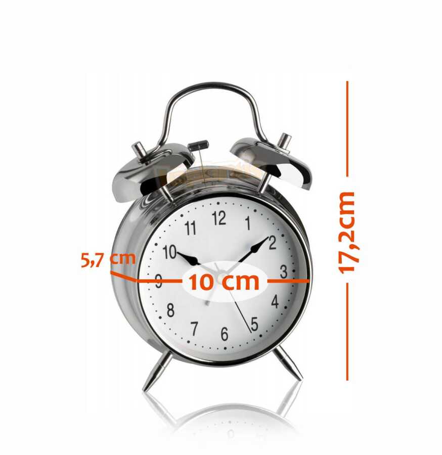 Analog ekranı ve kromajlı bitişi ile nostaljik görünümlü alarmlı saat.