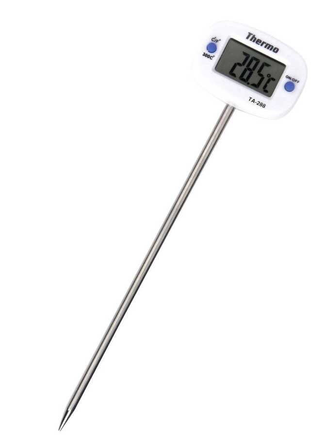 Geniş ölçüm aralıklı dijital, saplamalı gıda termometresi.