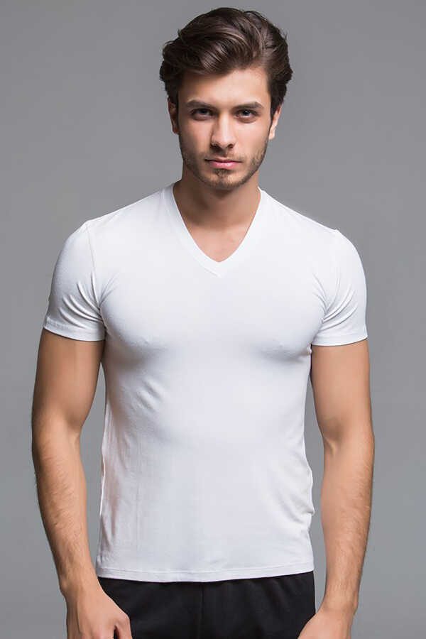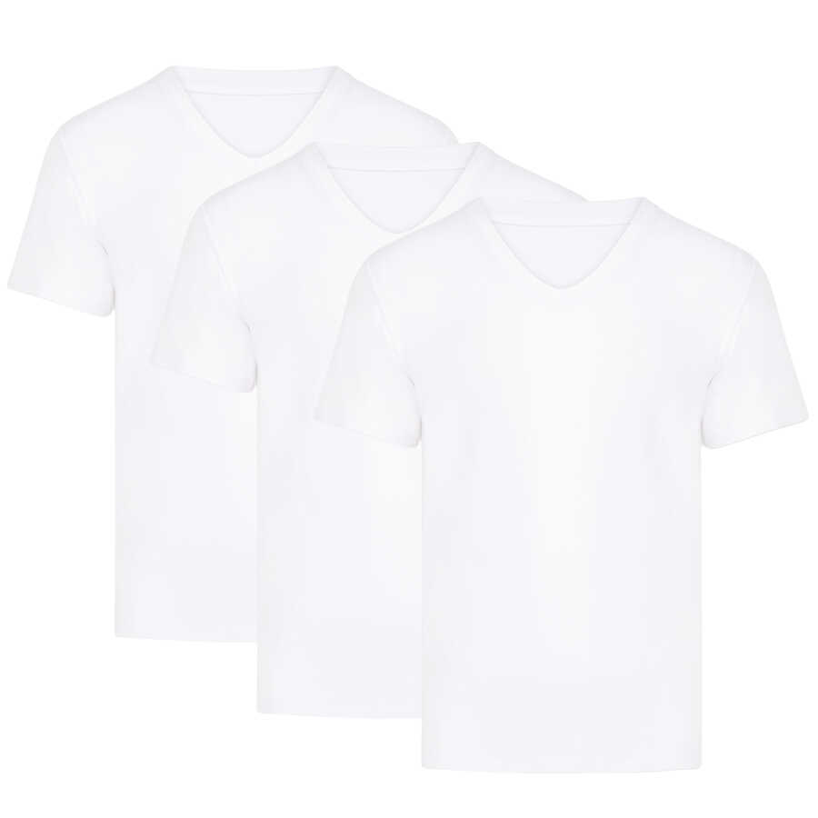 Paket İçeriği: 3 adet Thermoform Bambu Erkek V Yaka Tişört (Beyaz)