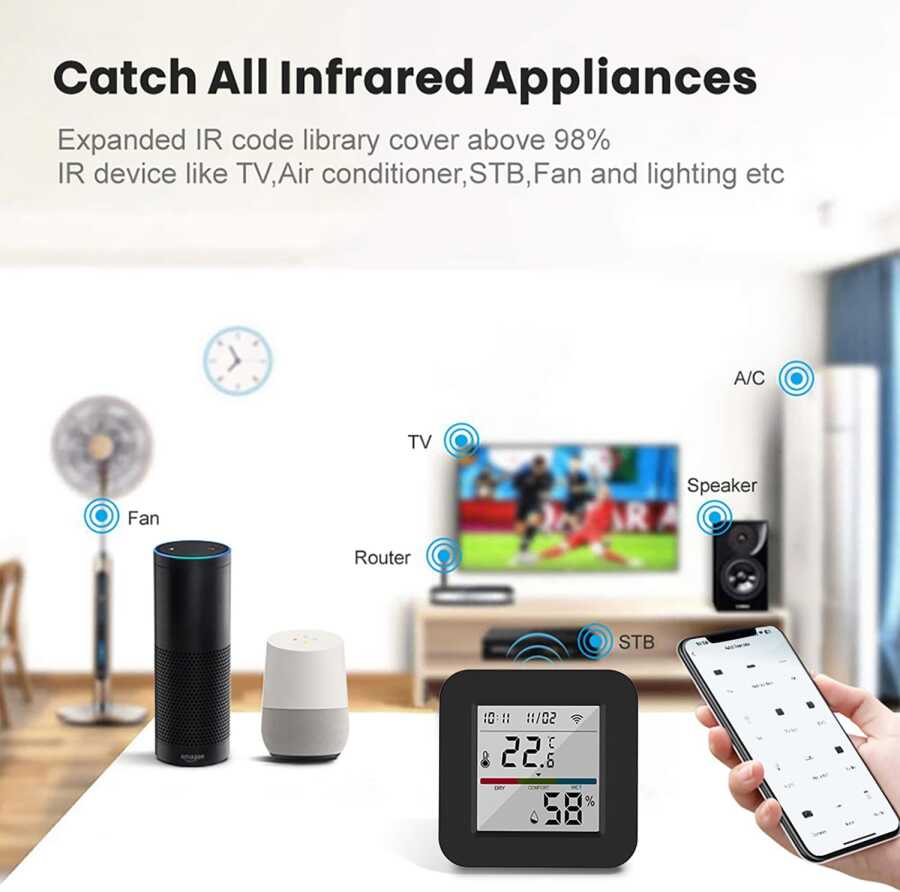 Tuya Smart Life aplikasyonunun yüklü olduğu telefonlar ile TV, klima, fan, ışık vs. gibi cihazları infared ile uzaktan kumanda edin