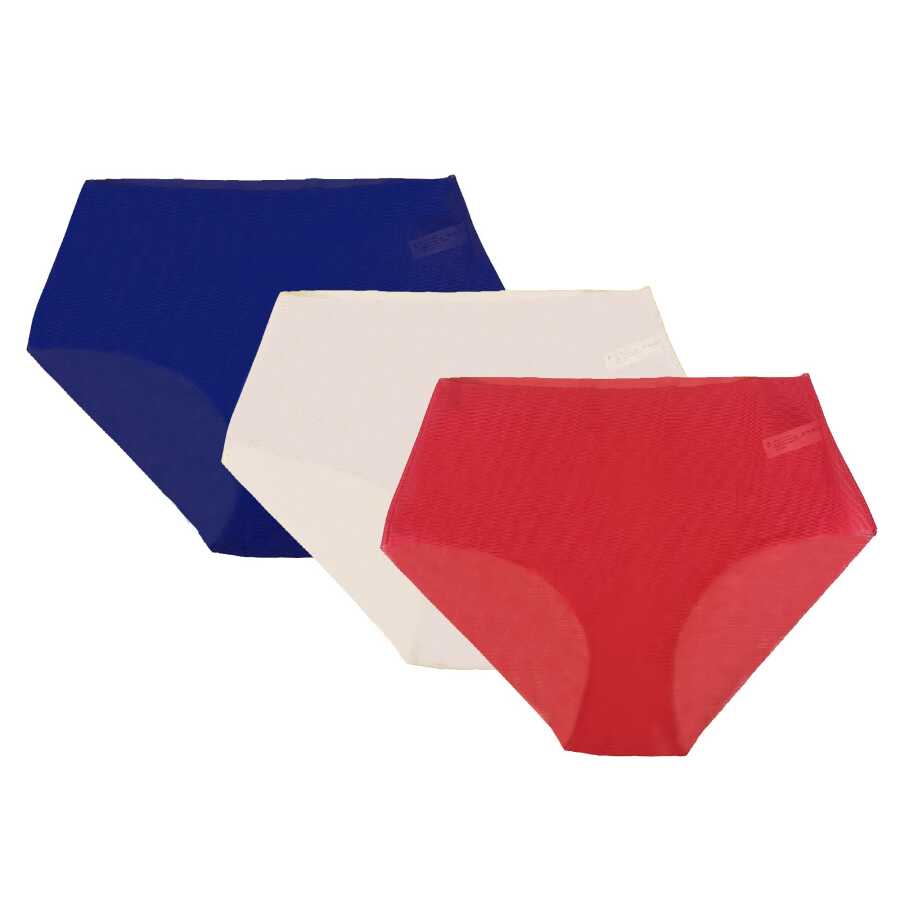 MODEL: UM230139001.VAR2Lazer kesim, yüksek bel, slip külot 3'lü paket Lacivert, kırmızı, bej %91 Microfiber, %9 Elastan